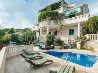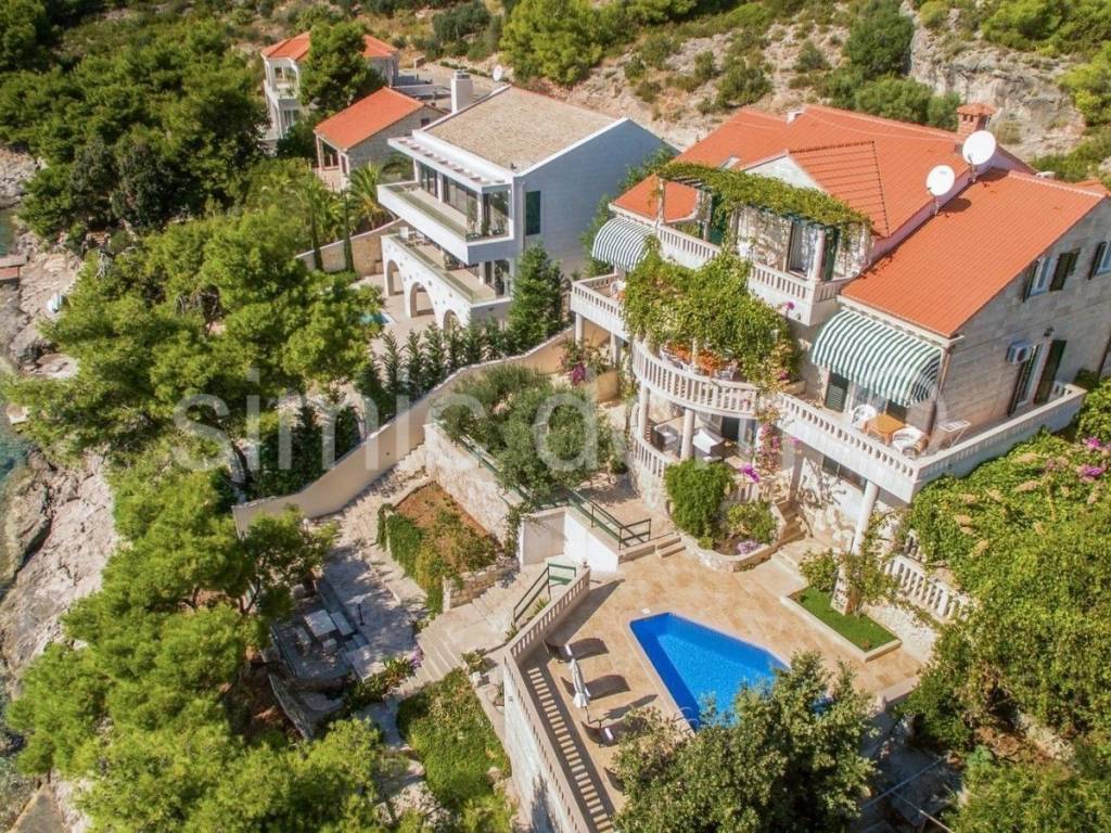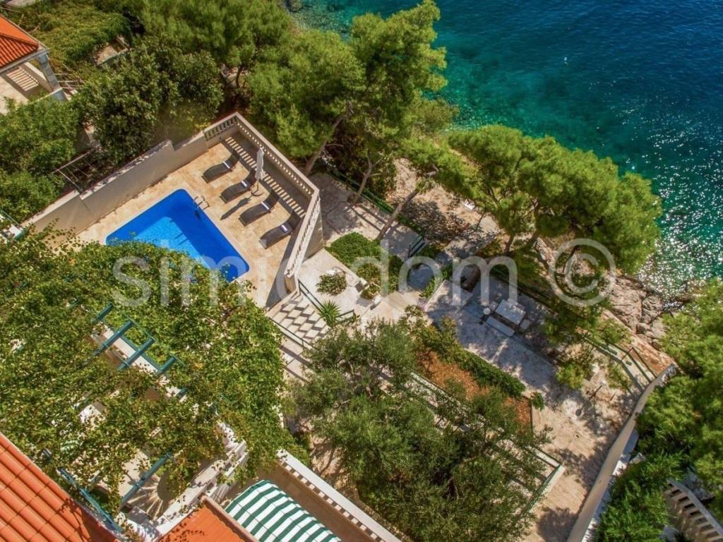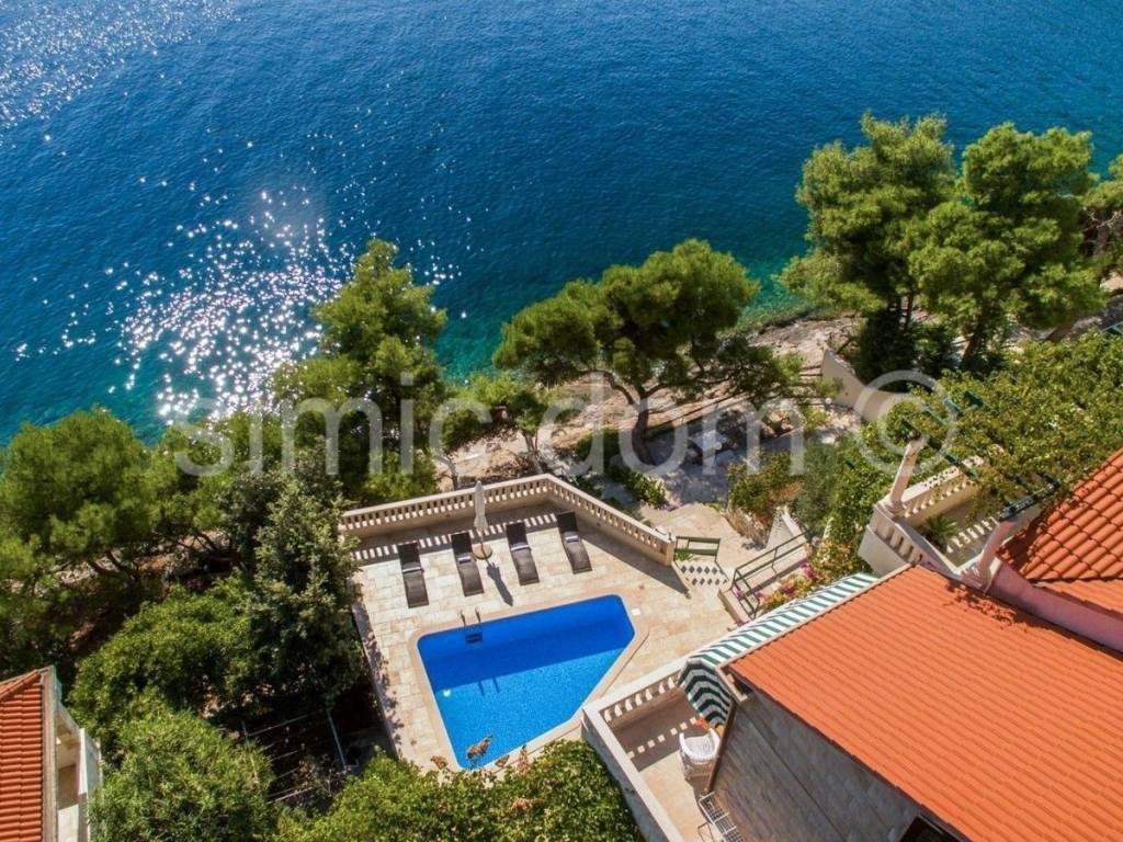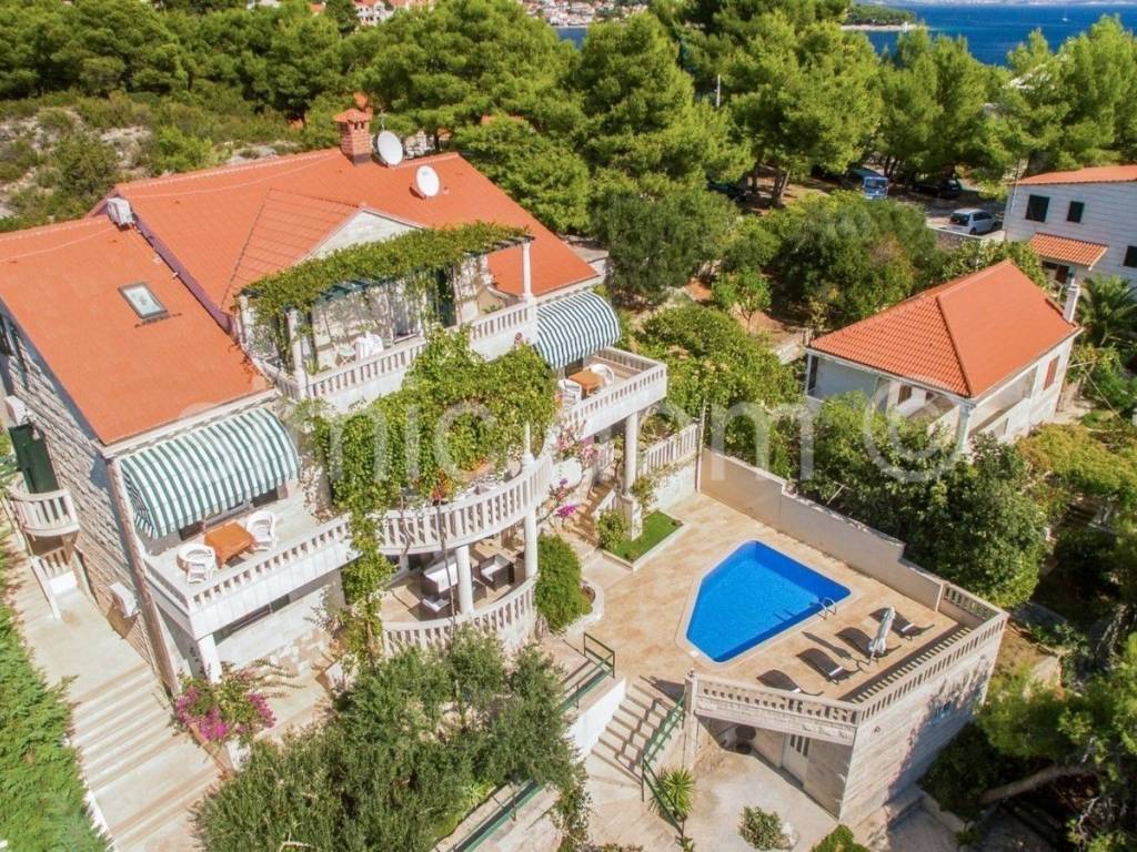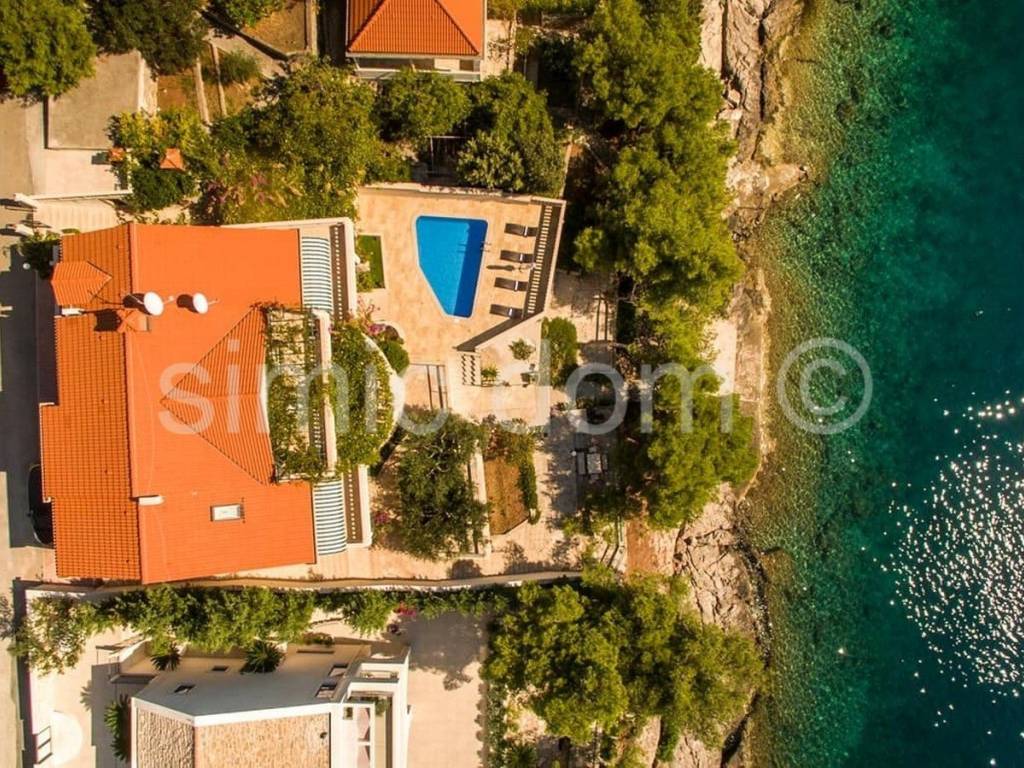 A breathtaking villa is for sale, placed just 10 meters from the turquoise blue sea. The surface of the villa is 530 sqm and it comprises the main house featuring 6 apartments plus 2 smaller objects. The spacious plot of 565 sqm includes spacious terraces with an outdoor dining area, a charming pool and a well-kept terraced garden. The property is being sold completely equipped and furnished, and only high-quality materials (such as Brac stone) were used in the building process. Thanks to this unique location, the future buyer can enjoy a private sea access as well as a private mooring for their boat. The property is perfect as a second home far from the urban noise and it also represents a business investment with excellent and long-term rental potential. Viewing this property is possible only with the signing of our standard agency agreement, which is the basis for further actions related to the sale of real estate, all in accordance with the Law on Data Protection and the Real Estate Brokerage Act.