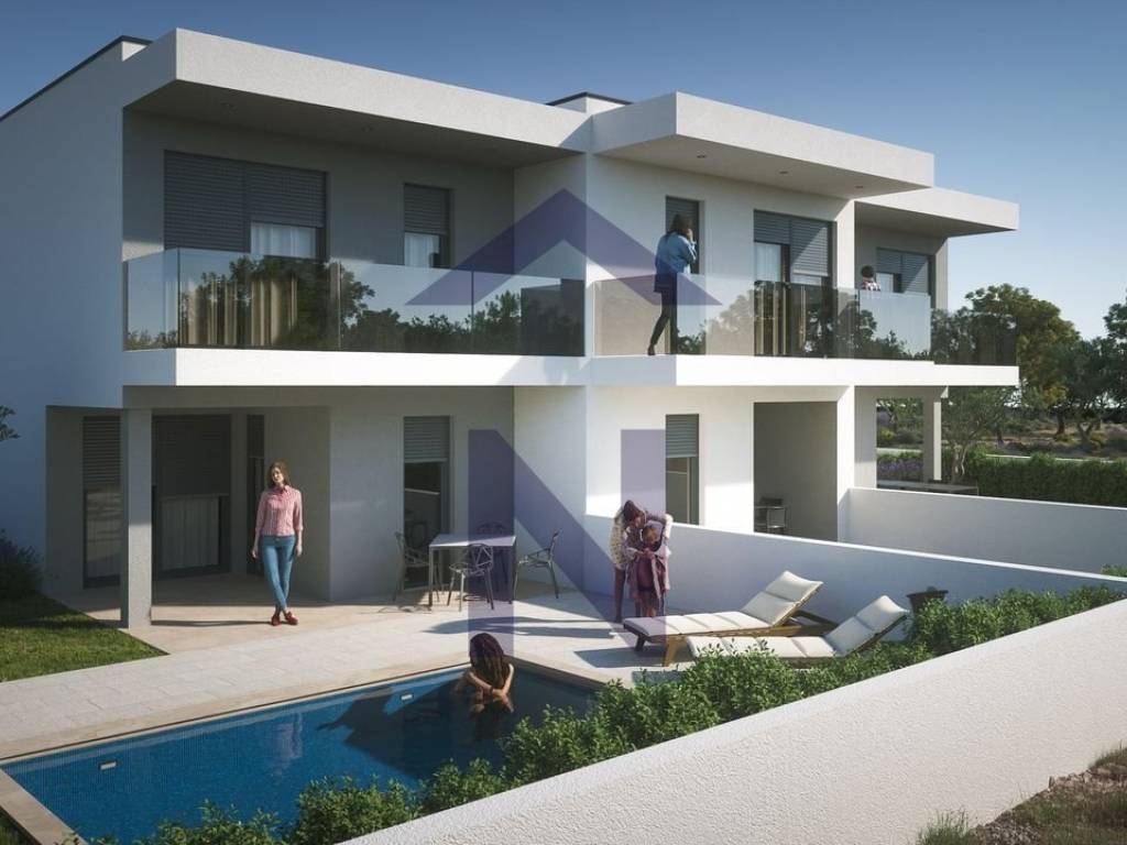 A total of 3 apartments, each consisting of an entrance area, kitchen and dining room, living room, bathroom, 3 bedrooms, toilet and loggia, with a total net area of 80.71m. Each apartment also includes two parking spaces. Apartments S1 and S3 have a private pool in the yard.