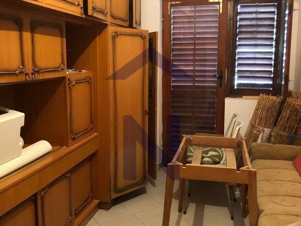 GROUND FLOOR includes a small apartment with a kitchen, dining area, bathroom, and bedroom.Next to the apartment, there is a storage room.Additionally, the ground floor has a large terrace with a sea view, covering 44m.