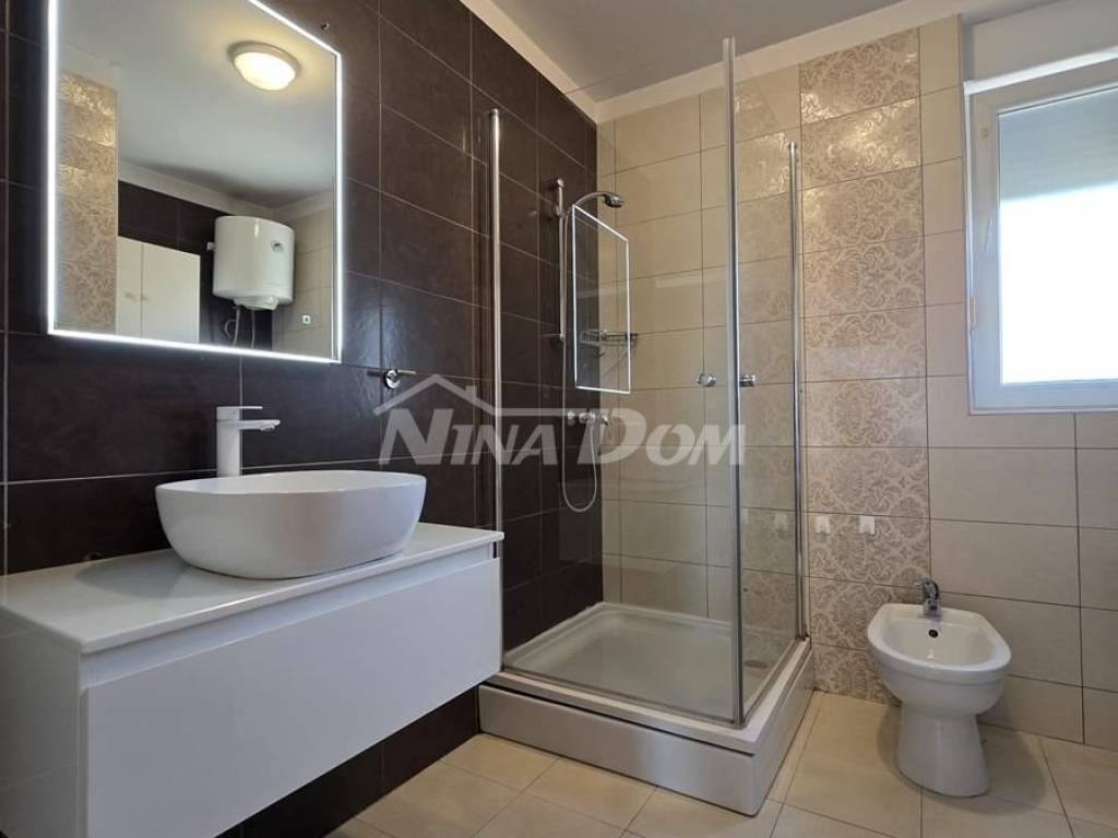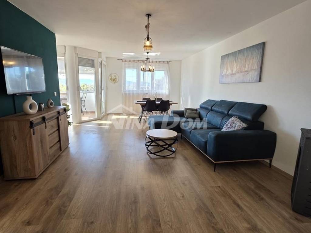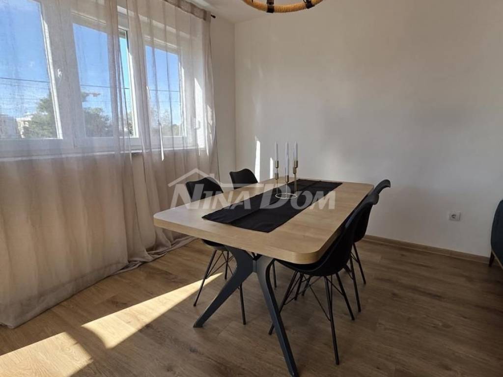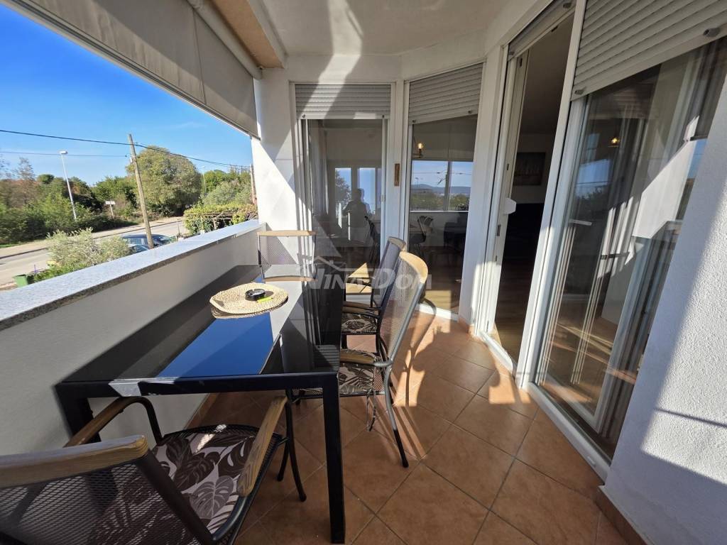 Prodaje se dvosoban stan na prvome katu manje stambene zgrade.Sastoji se od prostranog dnevnog boravka sa kuhinjom i blagovaonom,lođe,kupatila,te dviju spavaćih soba.Stanu još pripada i podrumska ostava,velićine 8,48 m2.Stan se prodaje u odnosu na slike sa oglasa djelomično namješten.Grijanje je izvedeno uspomoću peći na pelete(kruta goriva),te uspomoću klima uređaja.Blizina plaže,jedriličarskog kluba Uskok,trgovina,restorana,banke,šetnica i svih ostalih sadržaja,potrebnih za lagodan život.Za sva pitanja i obilazak,stojimo na raspolaganju.