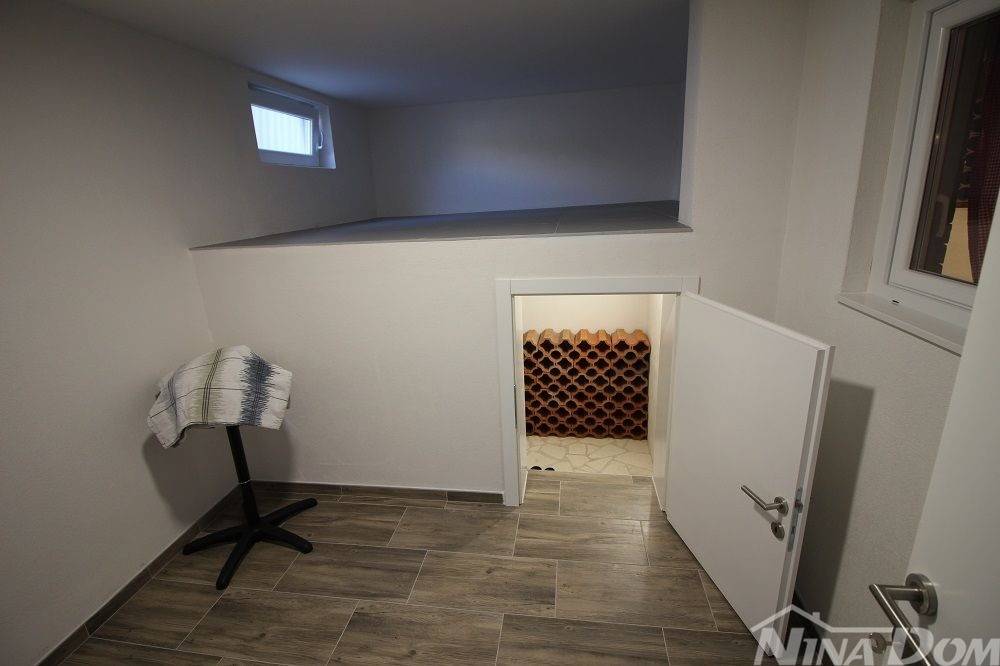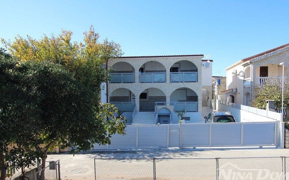 Situato sul lato stretto dell'isola di Vir, l'immobile è stato completamente ristrutturato. Si compone di un seminterrato con un appartamento con tre camere da letto e una zona comune tipo taverna. Al piano terra si trovano un appartamento con due camere da letto e un appartamento con una camera da letto. Primo piano: Ampio appartamento con tre camere da letto. Completamente arredato con mobili nuovi, aria condizionata. Collegato alla rete idrica e fognaria cittadina. Dista 200 metri dal mare e dalla spiaggia.