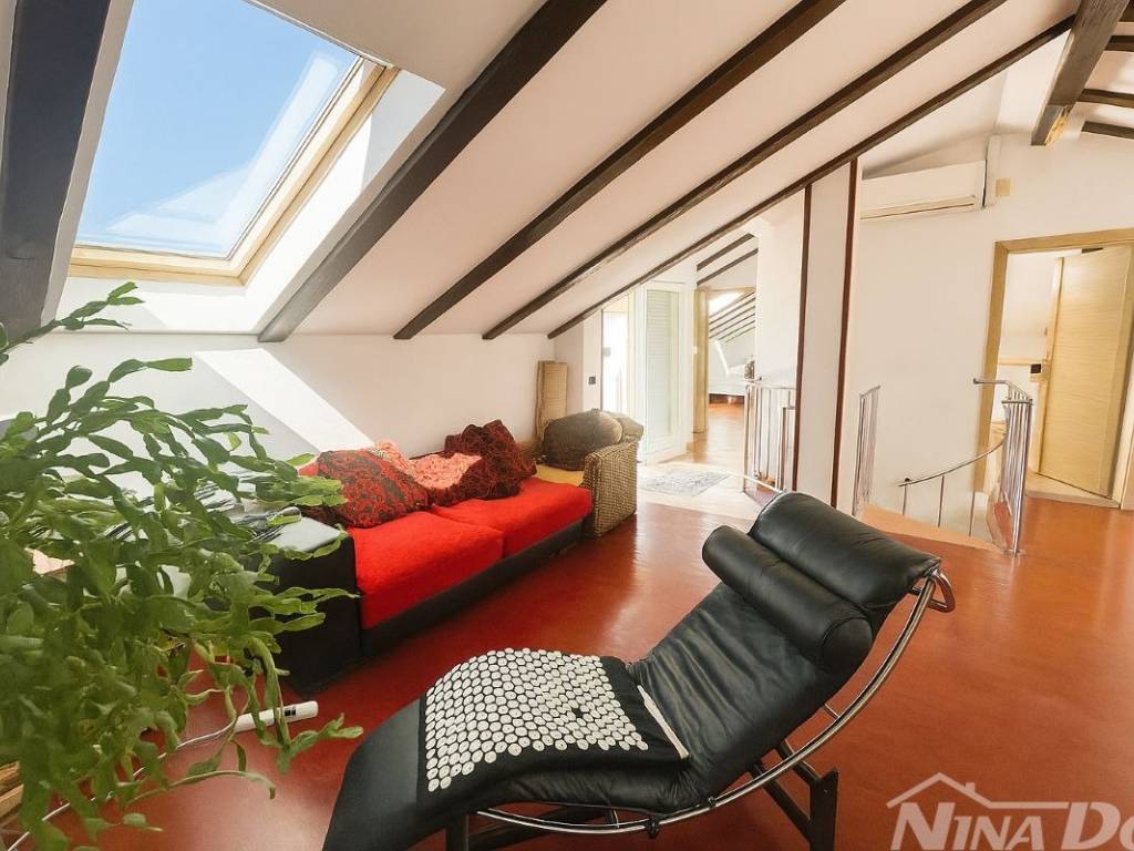 In vendita ampio appartamento duplex con superficie utile netta di 139,81 m (superficie lorda totale 207 m), situato al secondo piano e in mansarda di un edificio residenziale di piccole dimensioni. Lappartamento attualmente dispone di 2 comode camere da letto, ma può essere facilmente trasformato in un quadrilocale con piccoli interventi ideale per famiglie numerose. Piano inferiore (2 piano):