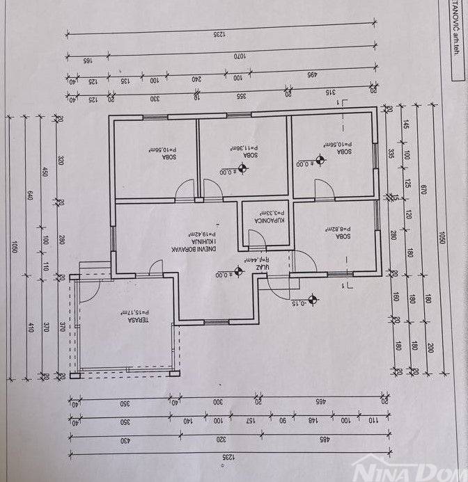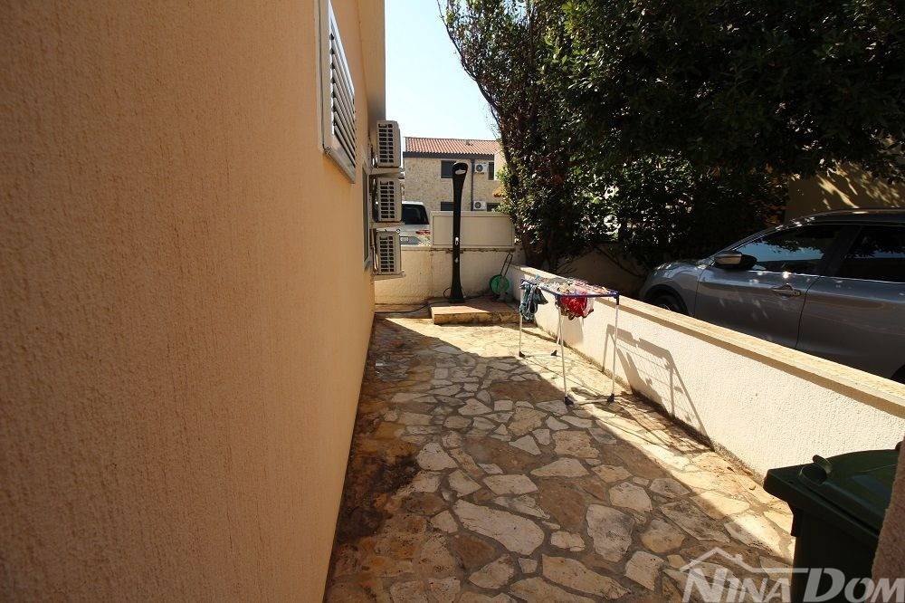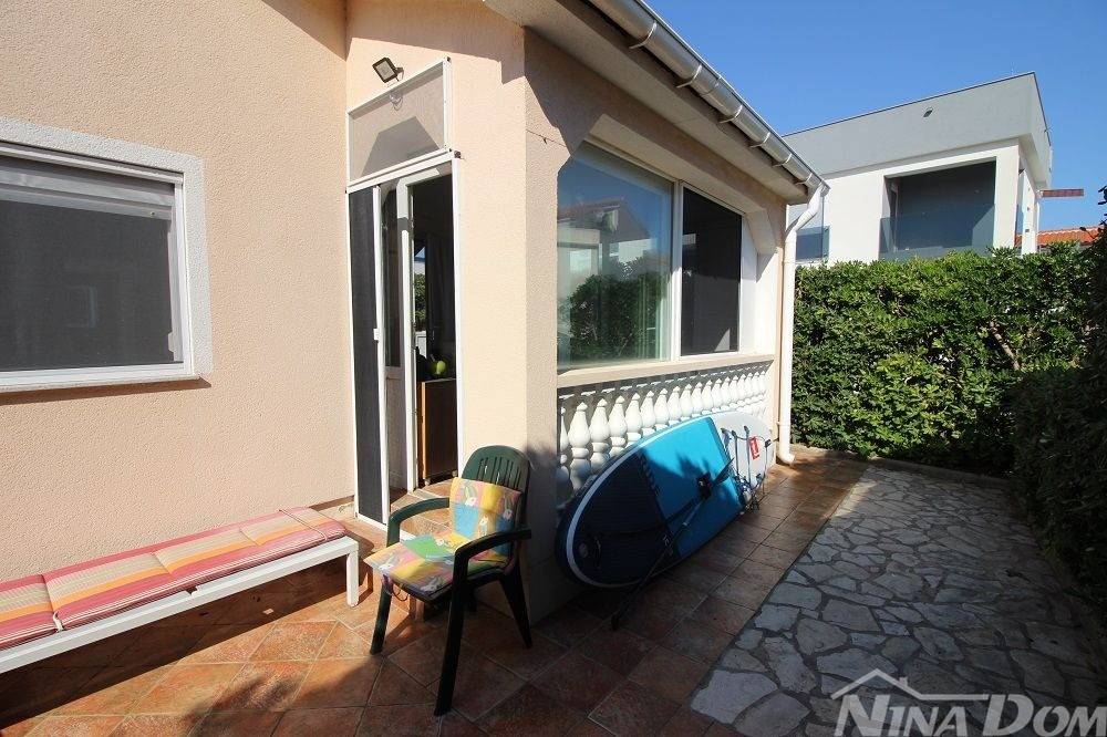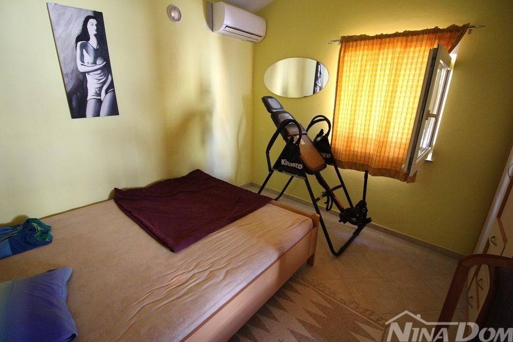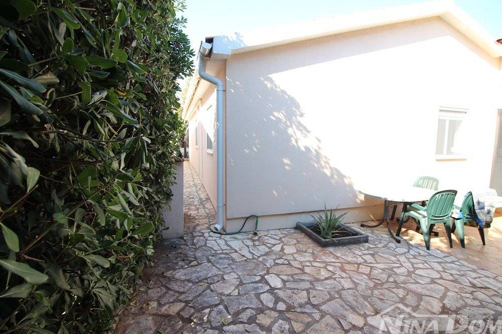 La proprietà è una casa indipendente, a 40 metri dal mare e dalla spiaggia. È composta da un ingresso, cucina con soggiorno, bagno, tre camere da letto principali e una di servizio. Aria condizionata. Loggia chiusa, edificio di servizio di 5 m. Serbatoio d'acqua di 7 m, elettricità, fossa settica. Giardino curato, pavimentato in pietra, doccia esterna.