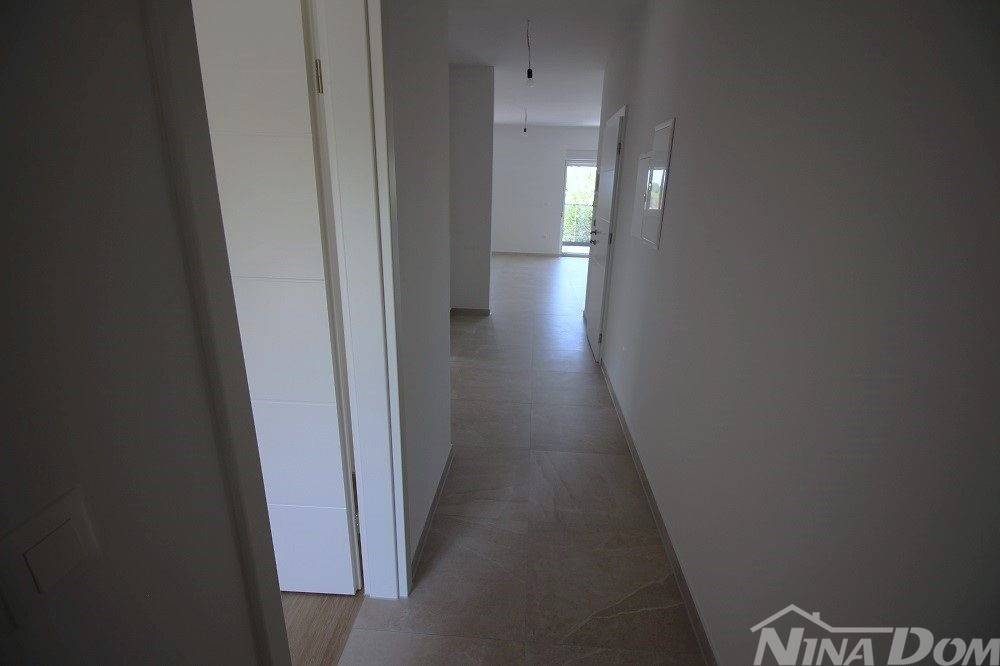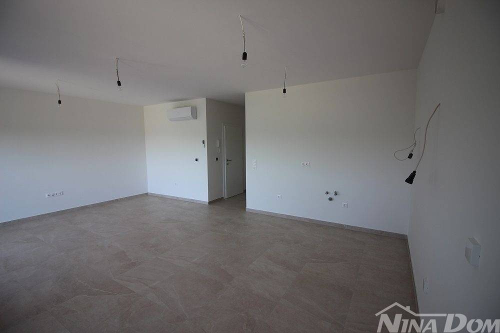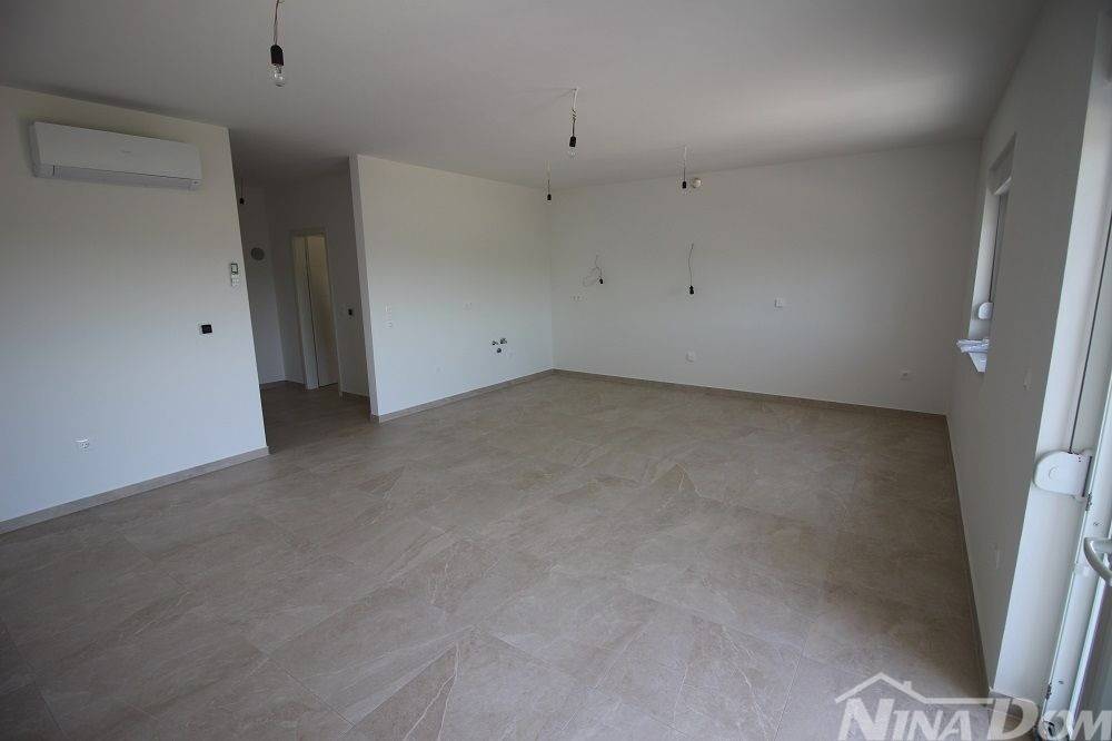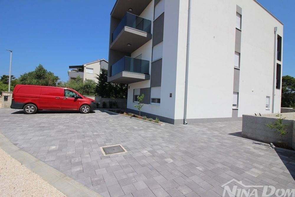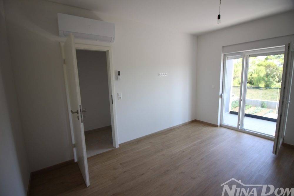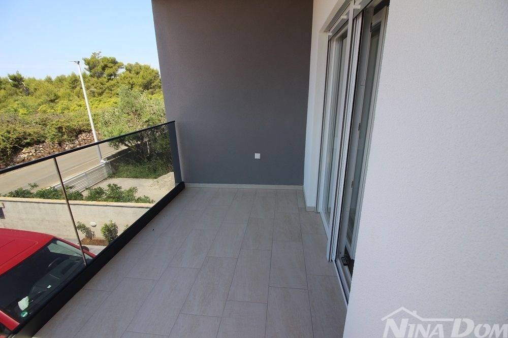 Appartamento di nuova costruzione sul lato sud dell'isola di Vir. Situato in una zona tranquilla di una strada a senso unico nelle immediate vicinanze del centro dell'isola di Vir, a 800 metri dalla spiaggia principale di Jadro. Situato al primo piano, è composto da ingresso, soggiorno con cucina, balcone coperto, due camere da letto, una delle quali con balcone, bagno. L'appartamento dispone inoltre di un posto auto. Aria condizionata (camere da letto e soggiorno), riscaldamento a pavimento (eccetto camere da letto).