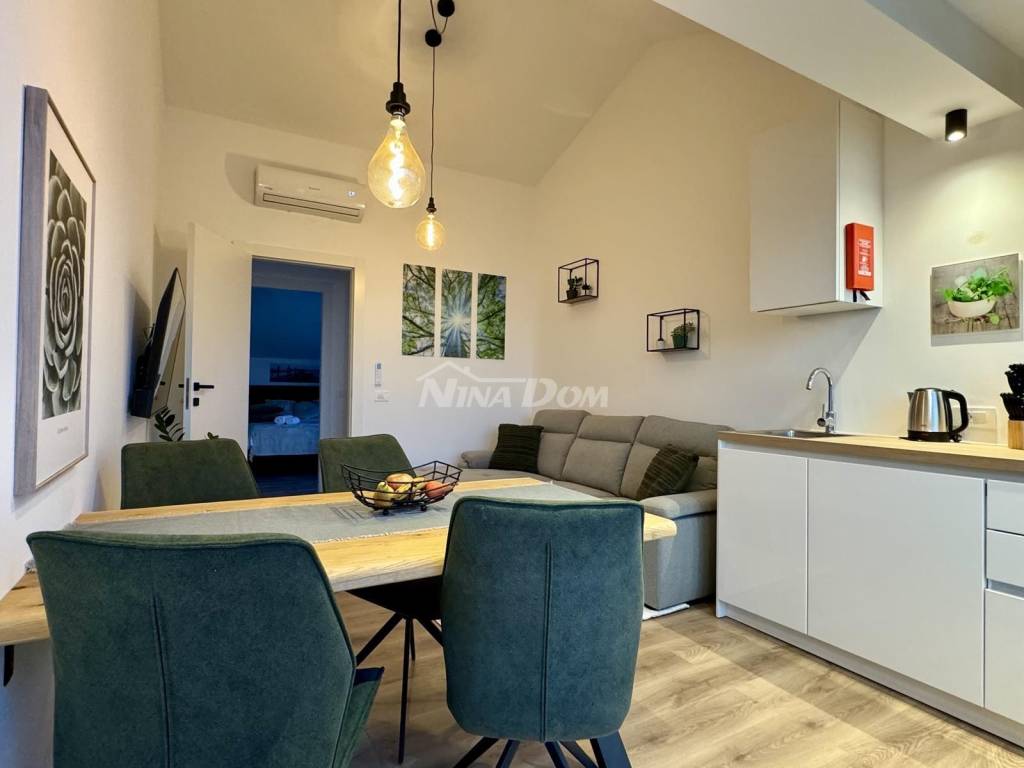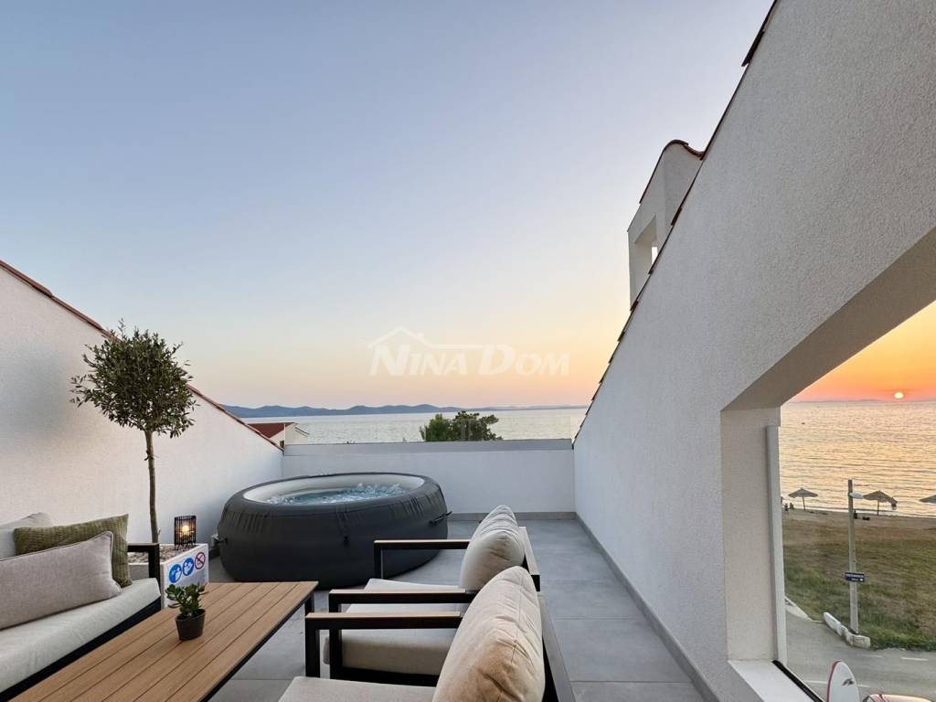 Diklo prvi red na prometnici,udaljeno svega četrdesert metara od mora,vrhunski poslovno stambeni objekat.Sastoji se od 9 potpuno opremljenih,renoviranih apartmana te jednog velikog master apartmana,te dviju poslovnih jedinica.U prizemlju se nalaze dva poslovna prostora,od kojih je trenutno caffe bar(mini kuhinja za doručak) u funkciji,fittness studio,te self servis praona rublja.Na ostalim etažama se nalaze ostale apartmanske jedinice iz kojih se pruža prekrasan pogled na zadarski kanal i otoke.Na dodatnoj čestici,neposredno uz nekretninu,nalaze se komfornih 11 parking mjesta.Kuća se prodaje komplet uhodana u turizam,sa svom opremom i namještajem.Blizina svih sadržaja,pekara,trgovina hranom,bankomat,prekrasna plaža i ostalo...Idealno kao investicija,za bavljenje turizmom i povratom investicije.Za sva pitanja i obilazak,stojimo na raspolaganju!