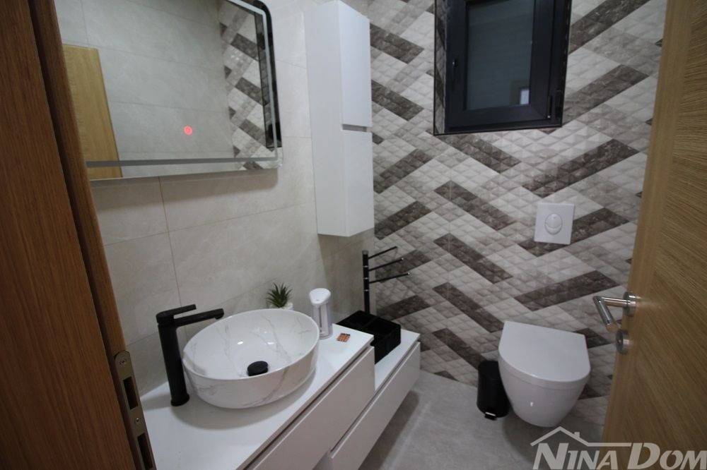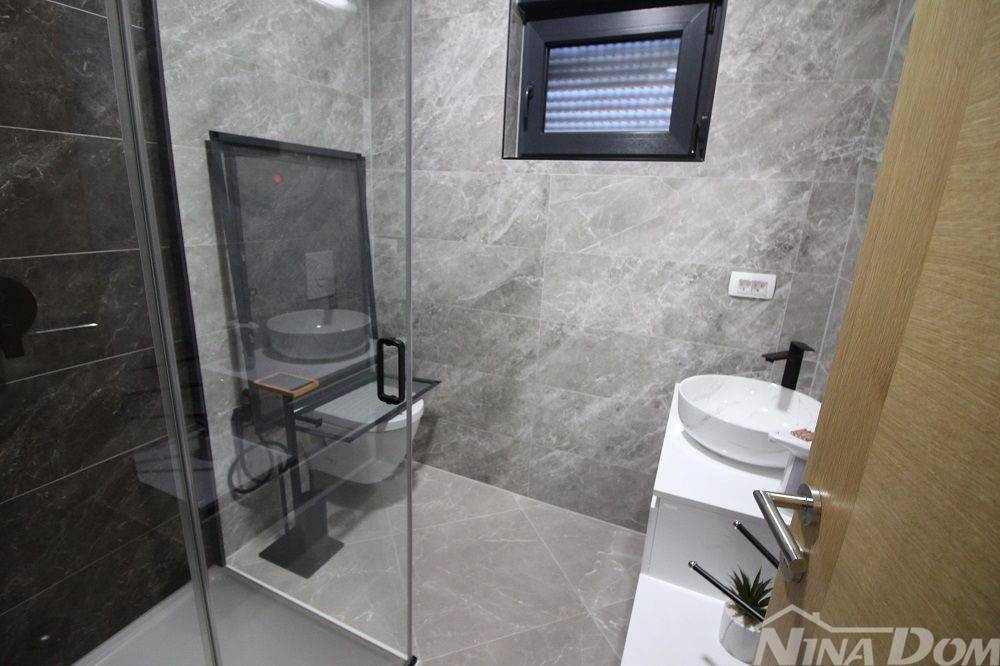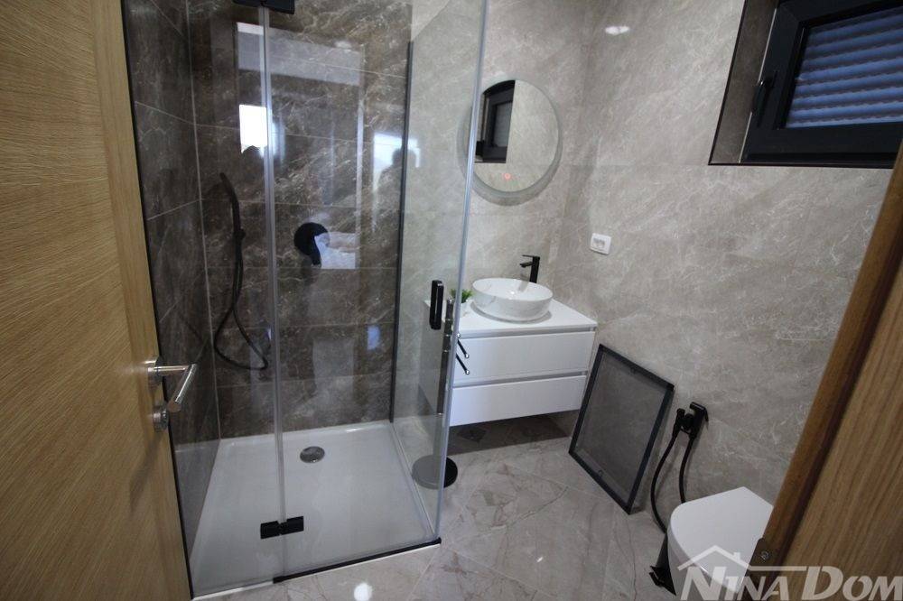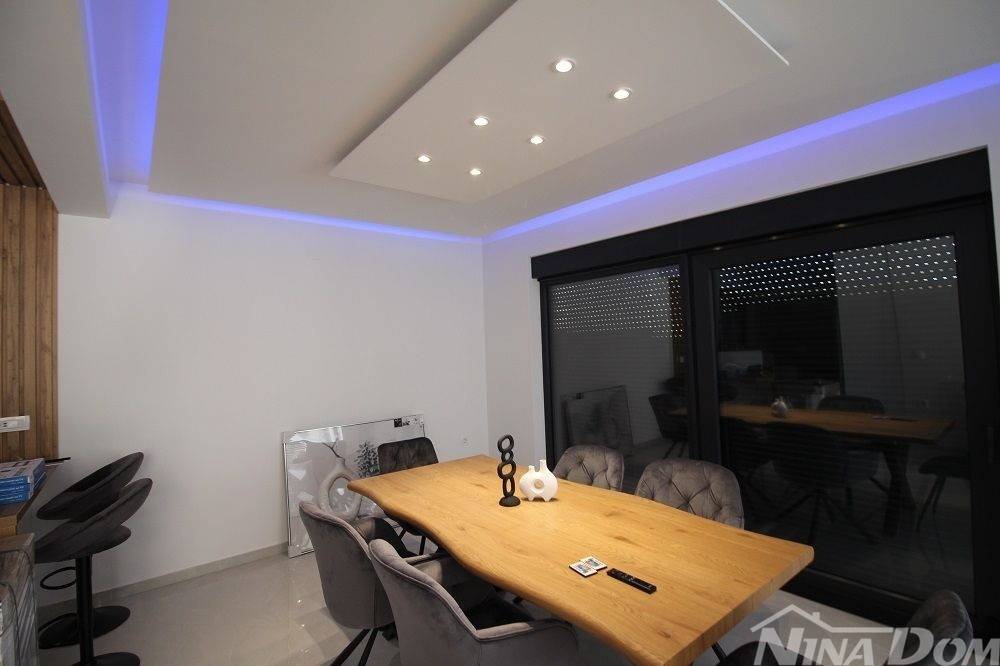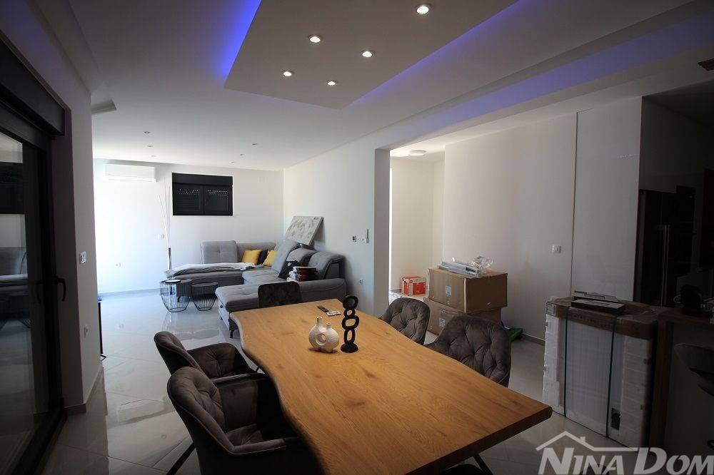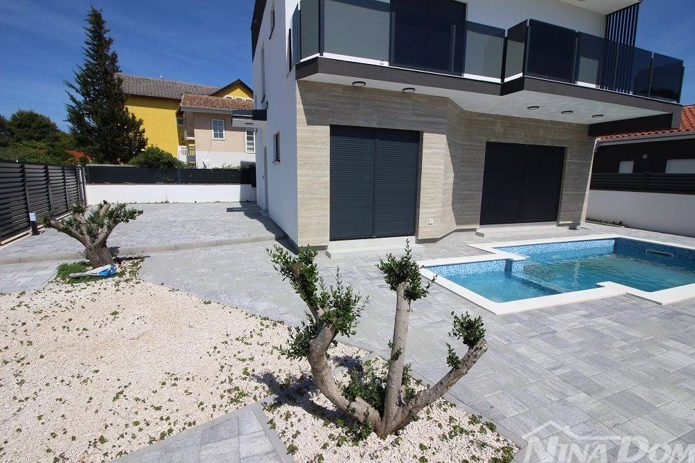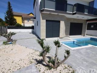 Nekretnina kompletno opremljena s namještajem, smještena u mirnom dijelu naselja u neposrednoj blizi autobusnog kolodvora. Udaljena od plaže Slatina 500 metara. Nekretnina ima korisnu površinu od 130 m2 i sastoji s od prizemlja i kata u kojoj se nalazi jedna stambena jedinica. Prizemlje: kuhinja s dnevnim boravkom i blagovaonica, kupaona, ostava,terasa, unutarnje stepenice i na katu su smještene 3 spavaće sobe svaka s svojom kupaonicom, hodnik, balkon. Klima uređaji, podna grijanja, okućnica s parkirnim mjestima i bazen.