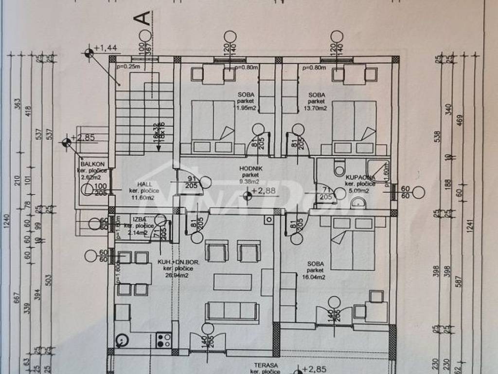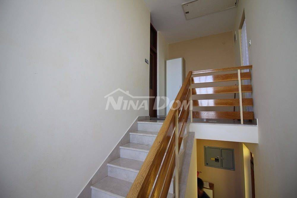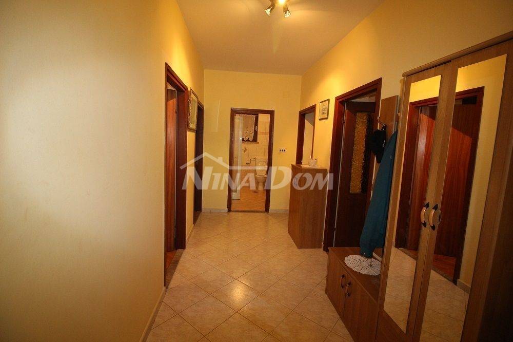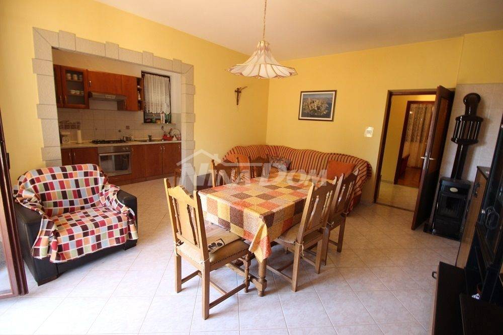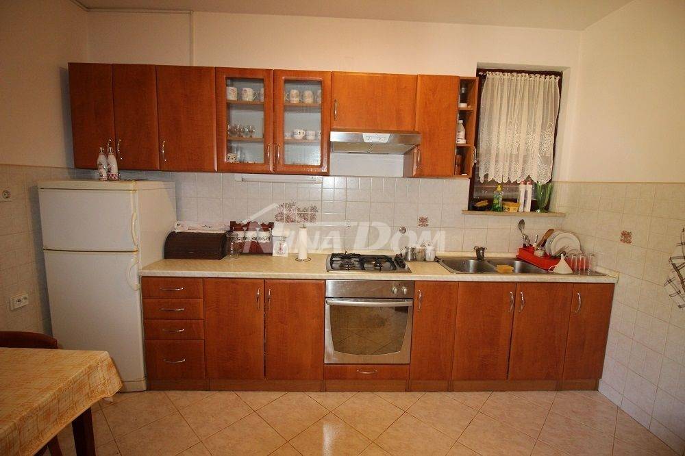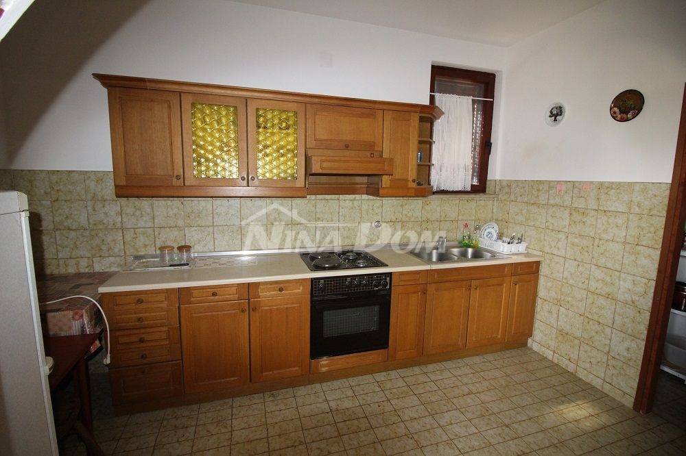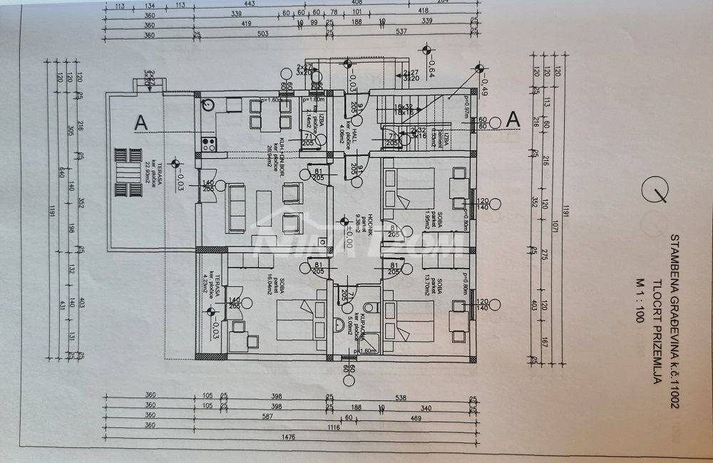 Prizemlje: predulaz, hodnik, tri spavaće sobe, kupaona, blagovaona-dnevni boravak, kuhinja i špajz. Velika terasa. Kat je identičan.