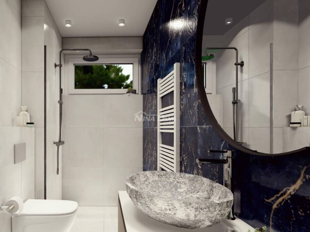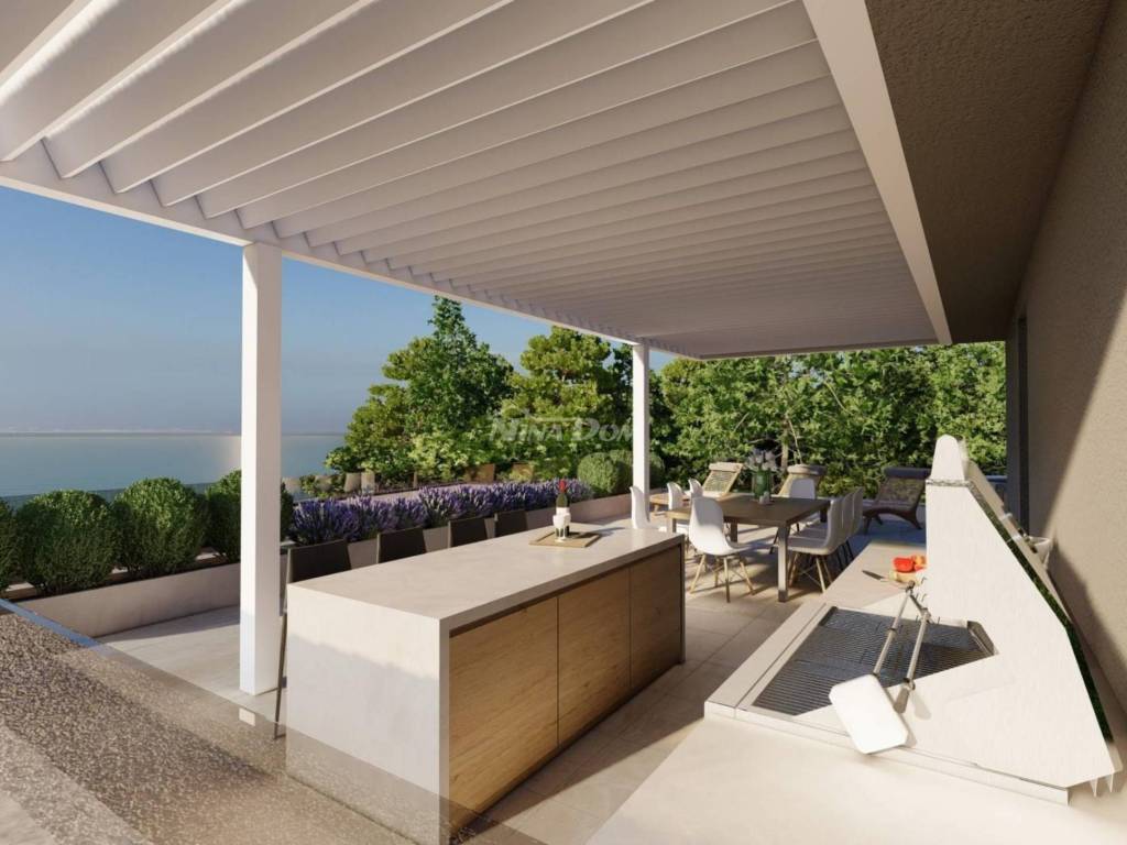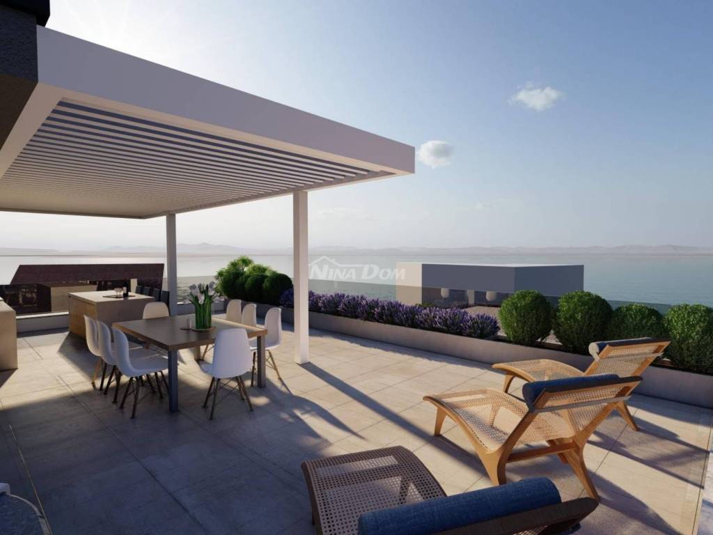 Prodaje se apartman 1.red do mora u Privlaci , svega 50 m od mora.Apartmanska zgrada se nalazi na ekskluzivnoj lokaciji , mirnog predijela Privlake (bez susjeda) okružen zelenom površinom.Sastoji se od : ulaza , hodnika , četiri spavaće sobe , tri kupaonice , spremišta , open space kuhinje s dnevnim boravkom iz koje se izlazi na prostranu terasu koja okružuje apartman te krovnom terasom s jacuzziem.Apartman je površine 149 m2 unutarnjeg prostora + terase60 m2 koja okružuje apartman , dva parkirnog mjesta 27,50 m2 , te krovne terase s jacuzziem površine 74 m2 , ukupno 272 m2 bruto prostora.Svi apartmani će biti izrađeni od visokokvalitetnih materijala , te je planirani dovršetak zgrade 12/2023.