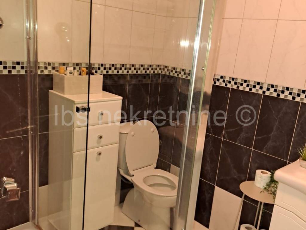 Supetar, kompletno namješten trosoban stan položen na prvom katu zgrade. Sastoji se od kuhinje, blagovaonice i dnevnog boravka, terase površine 11 m2, hodnika, tri spavaće sobe, kupaonice i garaže.