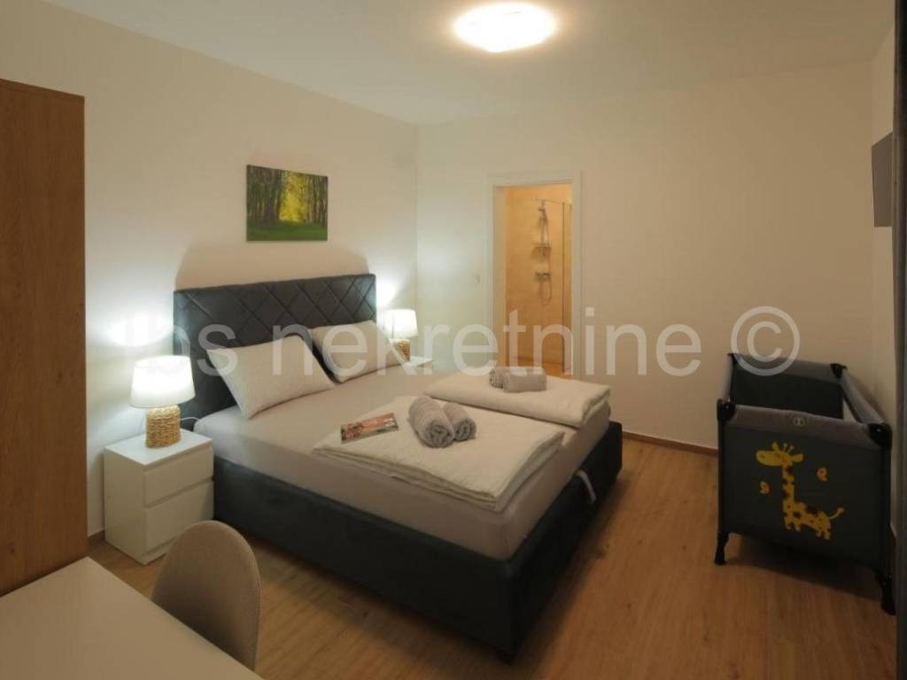 Svaki od apartmana se prostire na 83 m2 i sastoji se od prozračnog dnevnog boravka s kuhinjom i blagovaonicom, dvije prostrane spavaće sobe, svaka s vlastitom kupaonicom i spa sobe s jacuzzijem za potpuni opuštajući ugođaj. Svakom od apartmana pripada i vrt, popločan, obložen umjetnom travom i zidanim roštiljem.