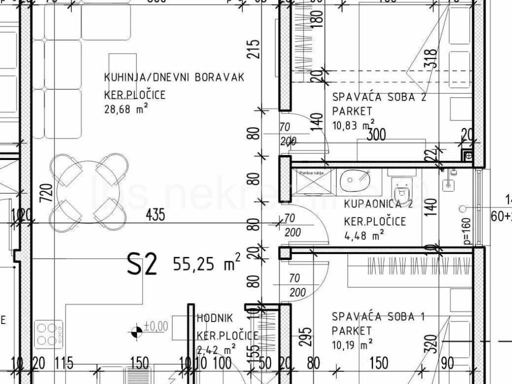 S1- 55.60 m2 flat. surface area + terrace 17.40 m2 + garden 200 m2 + 2 p.m.