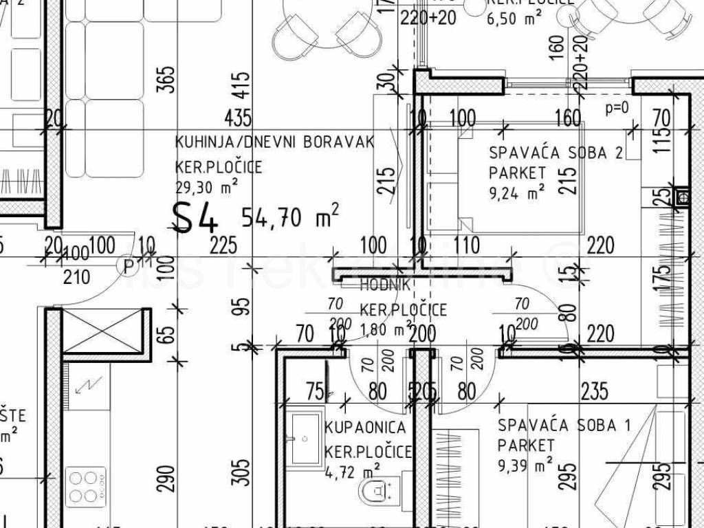 S4- 54.70 m2 flat. area + terrace 6.50m2 + 1 p.m.