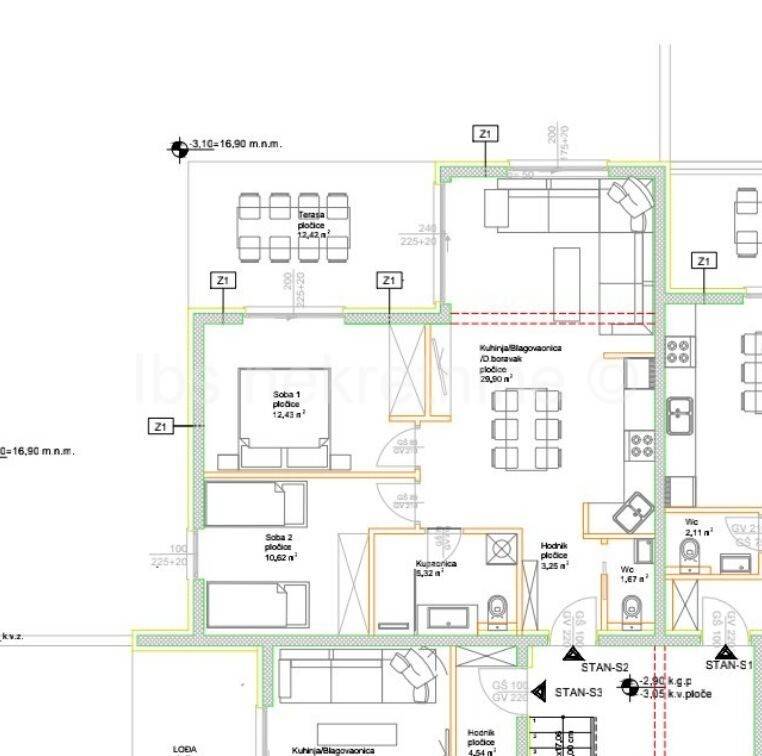 Es haendet es sich um ein Appartment auf Insel čiovo, Okrug Gornji. Das Appartment hat eine grosse von 63,55qm verteilt auf Kuche, Esszimmer, Wohnzimmer, Bad, Toilette und ein Balkon von 12qm grosse. Als Standard Austatung gehort Klimaanlage in ganzen Wohnung mit drei Inneneinheiten, Fussboden Heizung, Alufenster mit Eletrische Rollo, Mosquito netz, Fliesen(bis 35Euro, teure gg. Aufpreis), ein Parkplatz gehort noch dazu. Das Haus ist mit einen Aufzug Ausgestatet. Entfernung zum Strand 150m, Zentrum 300m.