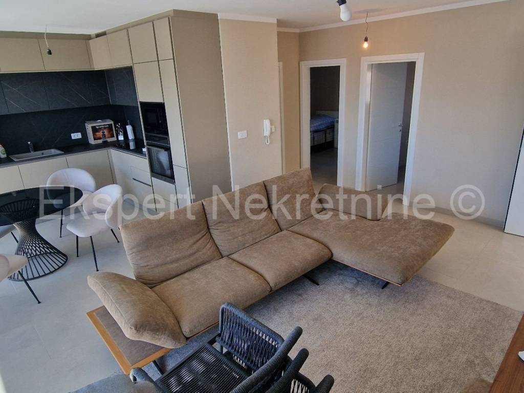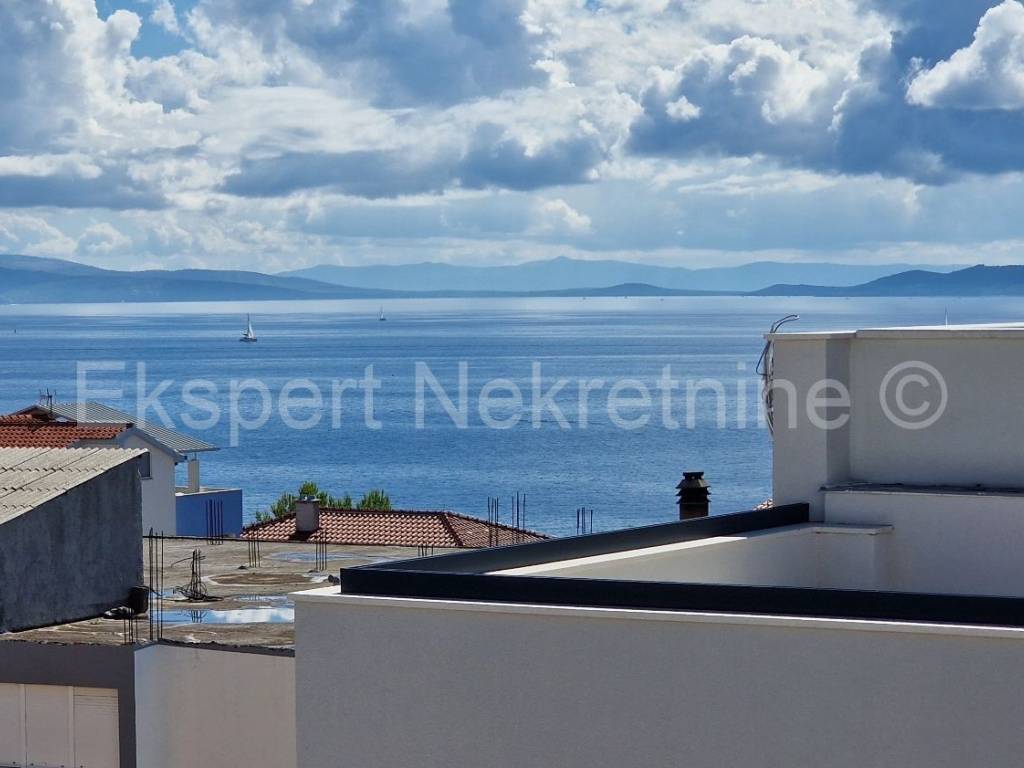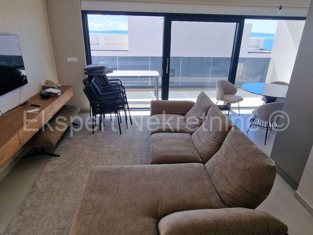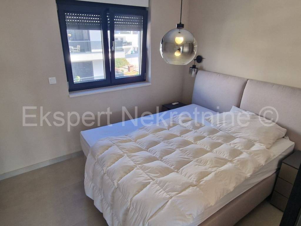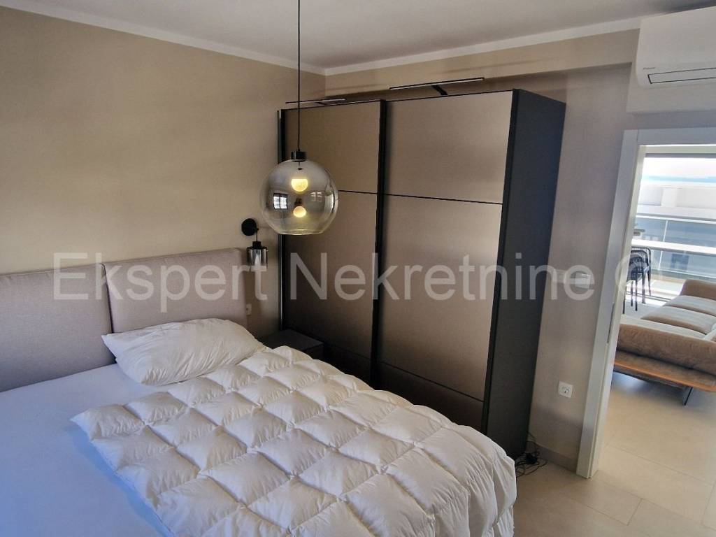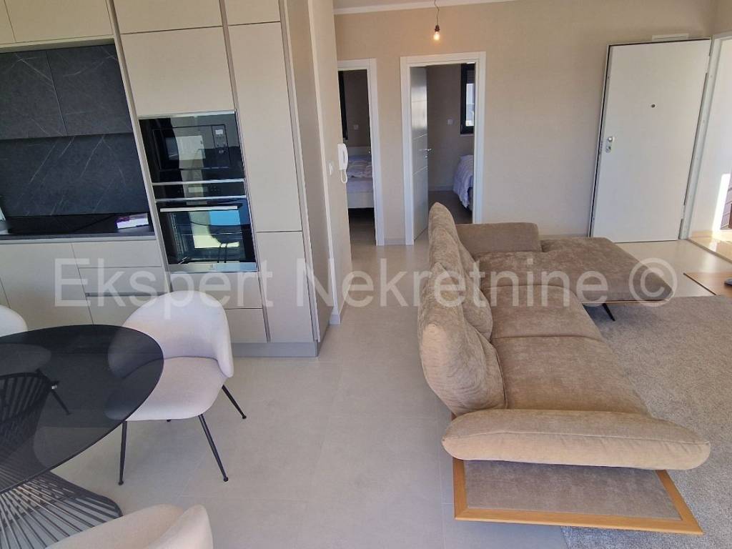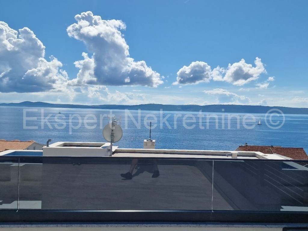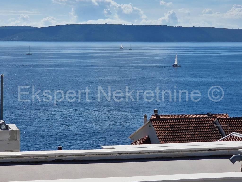 Čiovo, Okrug Gornji, penthouse 66 m2 + 67 m2 roof terrace with bioclimatic awning in a new building with an open sea view only 150 m away from the sea and the beach. The apartment is located on the 2nd floor (last) and is north-south oriented and has two bedrooms, bathroom, kitchen with dining room and living room, and a large terrace (13 m2) to the south with a partial sea view and a large roof terrace (69m2) with a bioclimatic awning with glazed side walls, and the possibility of setting up a barbecue as well as a summer kitchen and a jacuzzi. The apartment is located in a newly built building (2022) and is fully furnished with quality and modern furniture and appliances. Quality construction and equipment of the apartment (quality ceramics, underfloor heating throughout the apartment, electric shutters, air conditioning units in each room, large glass wall in the living room, large terrace, glass fence, bioclimatic awning, glazed part of the roof terrace, etc.). The apartment also has one outdoor parking space. Excellent and quiet location on the south side of the island of Čiovo, close to the sea and beach and panoramic sea views from the terrace. The apartment is ready to move in immediately. Ownership is in order.For more info, contact the agency.