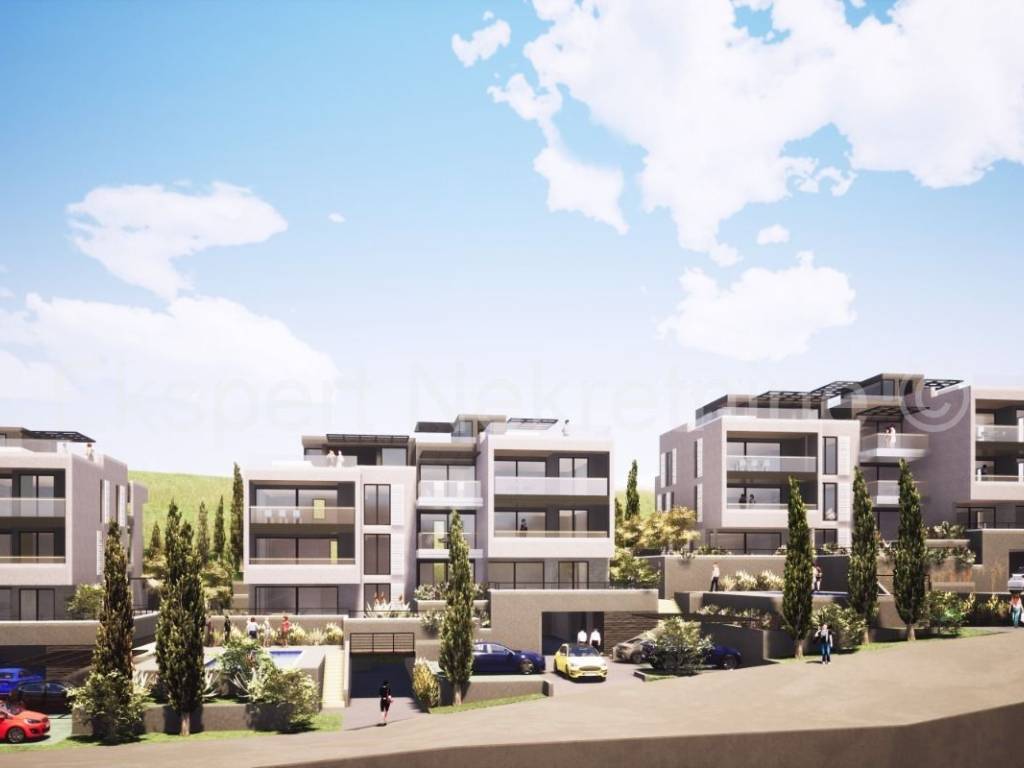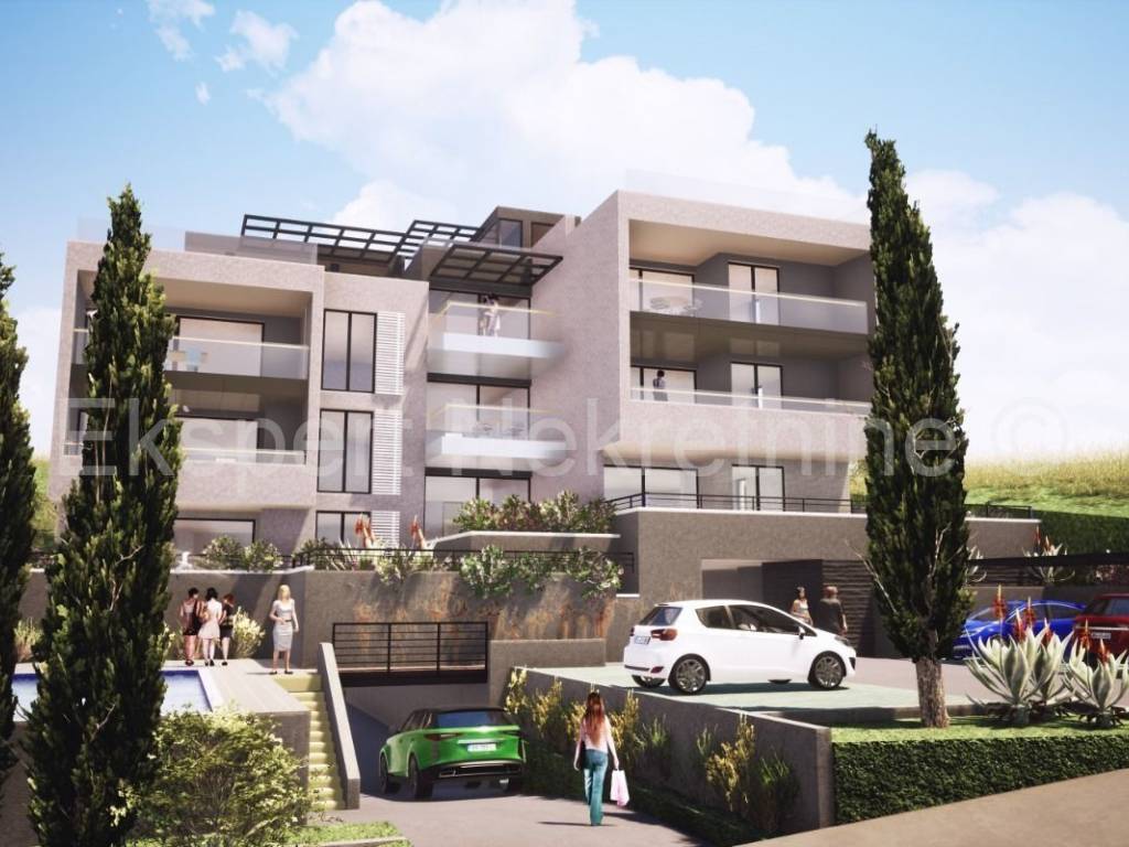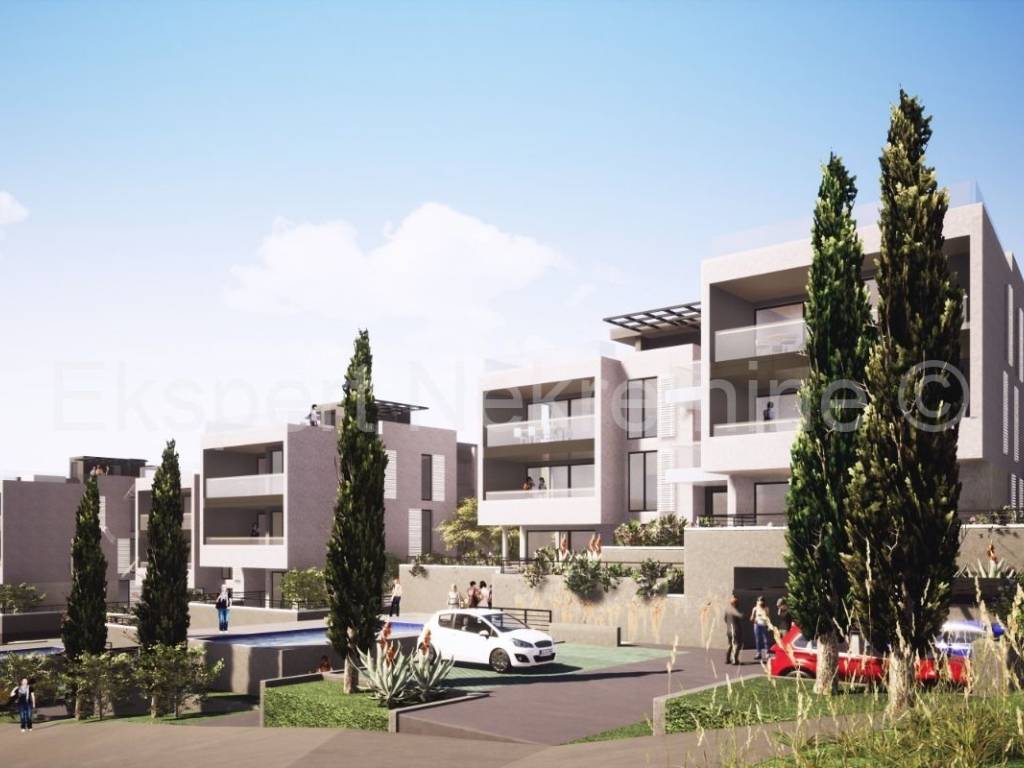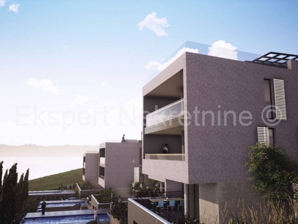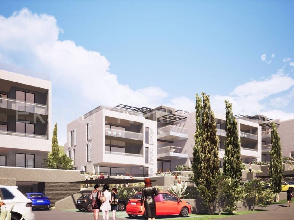 Trogir, Saldun, appartamento bilocale di 75 m2 (56 m2 + 19 m2 di terrazzo) con ampio giardino di 48 m2 e un posto auto, in un nuovo edificio con piscina in comune e ascensore.L'appartamento si trova al piano terra del fabbricato, orientato est-sud-ovest, e composto da due camere da letto, bagno, disimpegno, cucina con sala da pranzo e soggiorno ed un ampio terrazzo coperto (19 mq) ed un ampio giardino (48 mq) con vista su il mare.L'edificio si trova in una posizione eccellente e tranquilla, a soli 350 m dal mare e dalla vicina spiaggia, nonché a soli 1200 m dal centro storico di Trogir, il che rende gli appartamenti adatti sia per la residenza che per l'affitto turistico. è in fase di lavori di costruzione grezzi e il completamento previsto è per la fine del 2024. Costruzione di qualità (ceramica di alta qualità, carpenteria in PVC, facciata termica 10 cm, condizionatori d'aria, riscaldamento a pavimento, tapparelle elettriche, piscina, ascensore, ecc... ) Ogni appartamento dispone di un posto auto esterno e con un costo aggiuntivo è possibile acquistare anche un altro posto auto esterno ( 7.000,00) o un posto auto in garage ( 25.000,00). Considerando che il venditore è un'azienda, tutti i prezzi sono indicati con IVA inclusa, e per gli acquirenti questo significa che non pagheranno l'imposta sulla vendita degli immobili nella misura del 3%. Pagamento per fasi di costruzione.Per maggiori informazioni contattare l'agenzia.