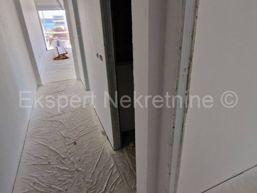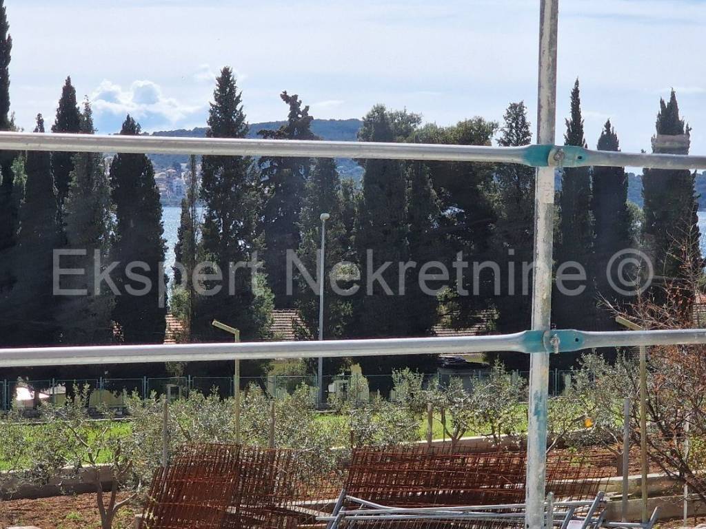 Seget Donji, comfortable three-bedroom apartment 96 m2 (79 m2 apartment plus 17m2 balcony) in a new building with an elevator, on the ground floor, south-facing, with a large loggia (17 m2) with a sea view in a building in an excellent and quiet location only 200 m from the sea and the beach. The apartment has three bedrooms, one of which has its own bathroom, hallway, bathroom, kitchen with dining room and living room and a large loggia (17 m2) with a beautiful sea view.