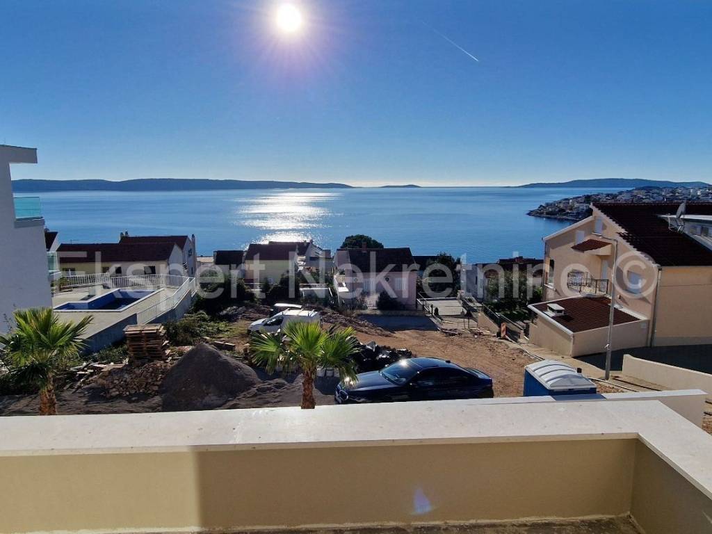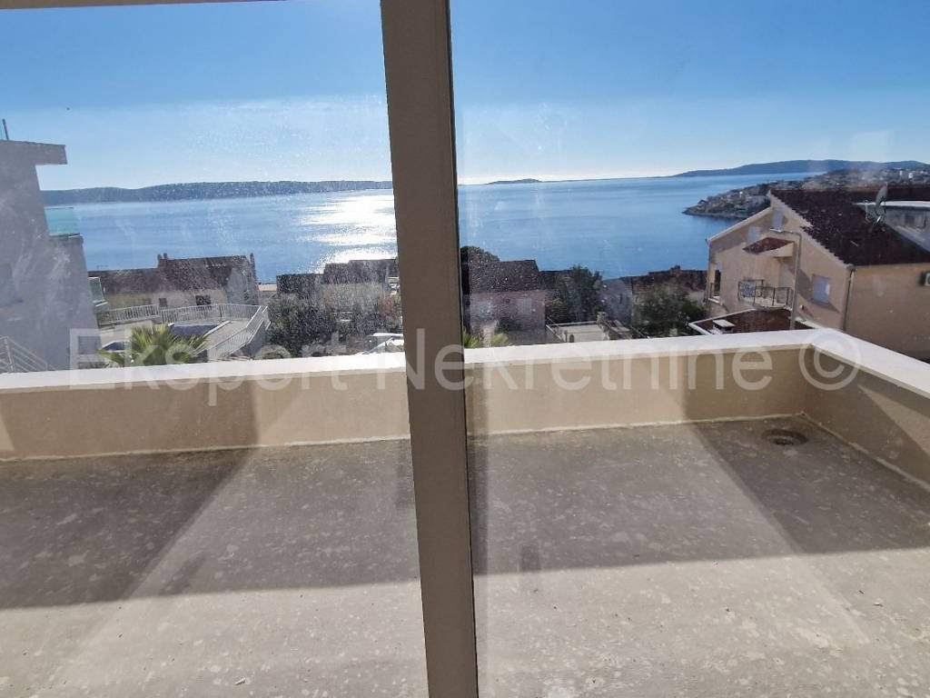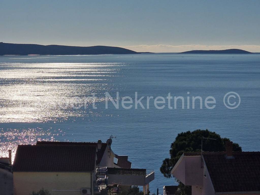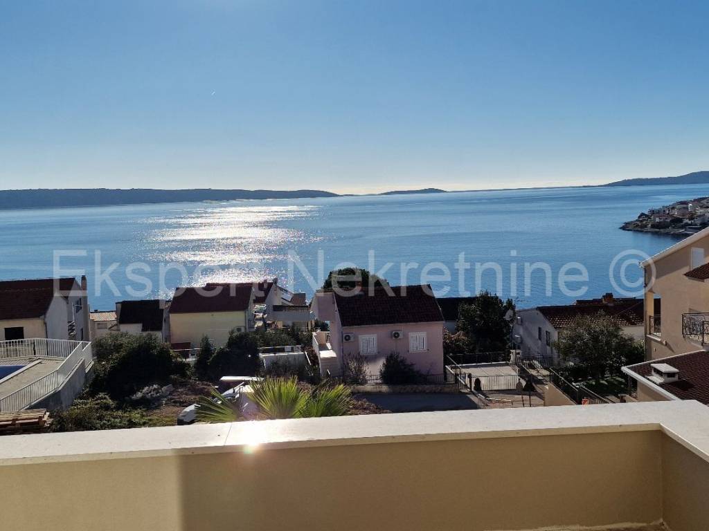 Čiovo, Okrug Gornji, three-bedroom apartment 79 m2 + covered terrace 20 m2 in a new building, only 220 m from the sea and beach with a sea view. The apartment is located on the first floor of the building, east-south-west-north oriented, and consists of three bedrooms, one of which has its own bathroom, bathroom, hallway, kitchen with dining room and large living room and a large terrace (20m2) with a beautiful and open view of the sea and islands. The apartment has an open view of the sea and islands. The apartment also has one large outdoor parking space.The building is located in an excellent location, south side of Čiovo, only 220 m from the sea and beach. Quality construction (quality ceramics, underfloor heating throughout the apartment, air conditioning in all rooms, mosquito nets, electric shutters, PVC joinery, etc.). The building is in the phase of rough construction works and the planned completion is the end of 2025.Payment by construction stages. Ownership in order.For more information, contact the agency.