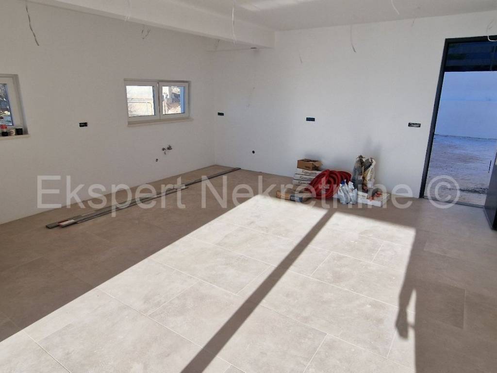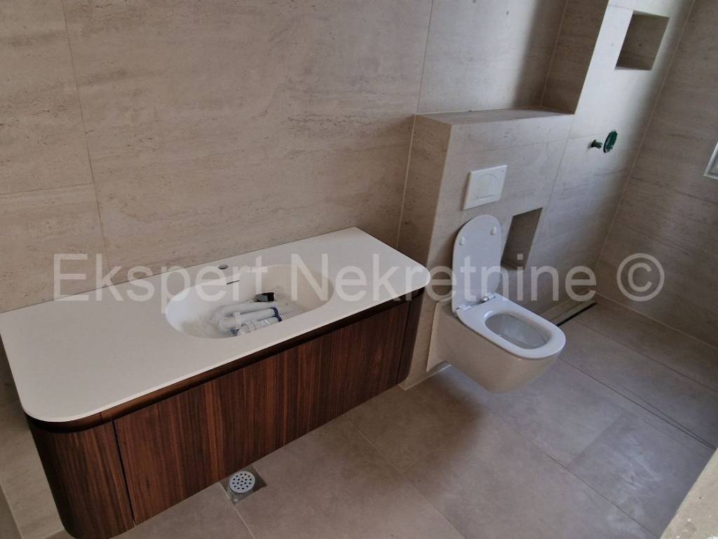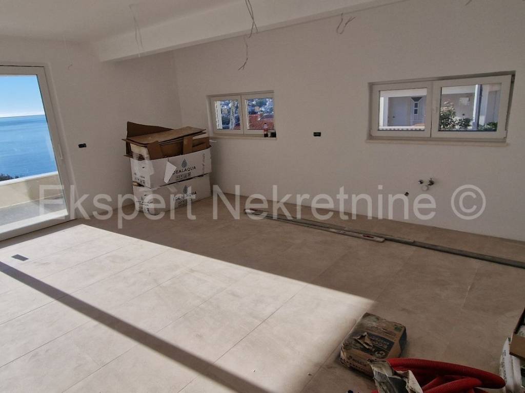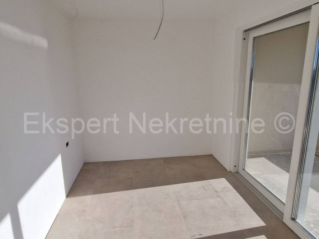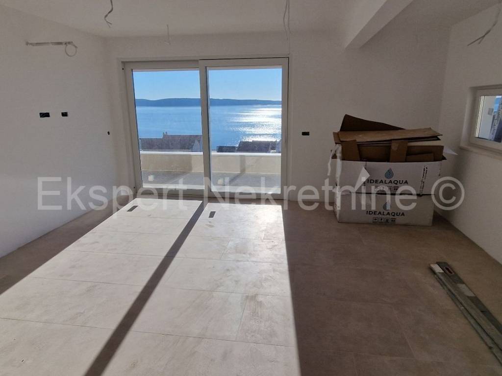 Čiovo, Okrug Gornji, three-bedroom apartment 79 m2 + covered terrace 20 m2 in a new building, only 220 m from the sea and beach with a sea view. The apartment is located on the first floor of the building, east-south-west-north oriented, and consists of three bedrooms, one of which has its own bathroom, bathroom, hallway, kitchen with dining room and large living room and a large terrace (20m2) with a beautiful and open view of the sea and islands. The apartment has an open view of the sea and islands. The apartment also has one large outdoor parking space.The building is located in an excellent location, south side of Čiovo, only 220 m from the sea and beach. Quality construction (quality ceramics, underfloor heating throughout the apartment, air conditioning in all rooms, mosquito nets, electric shutters, PVC joinery, etc.). The building is in the phase of rough construction works and the planned completion is the end of 2025.Payment by construction stages. Ownership in order.For more information, contact the agency.