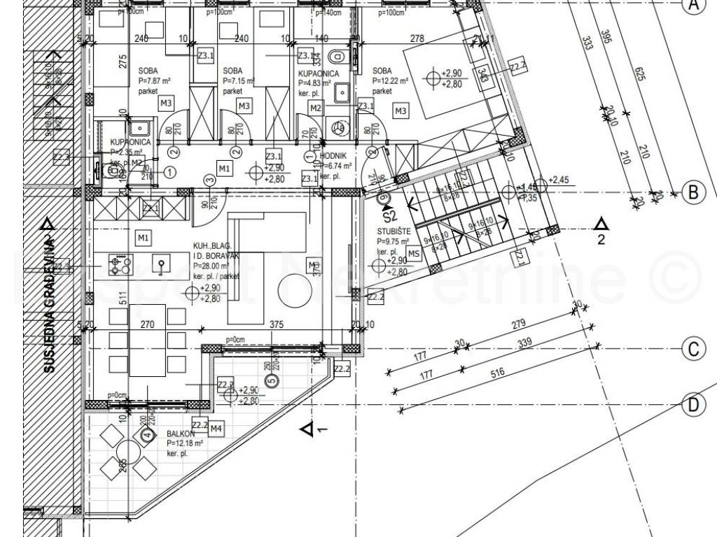 Podstrana, località Strožanac, appartamento trilocale 78 al penultimo piano di nuova costruzione con posto auto a 800 m dal mare e dalla spiaggia.
