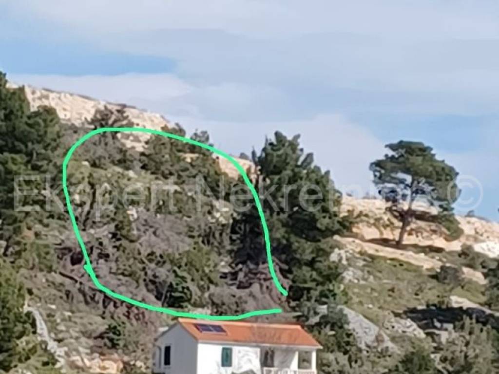 Brač, Nerežišća, baia Vela Farska, terreno edificabile di 758 m2, a soli 130 m dal mare e dalla spiaggia, il terreno ha una strada di accesso, proprietà in ordine.