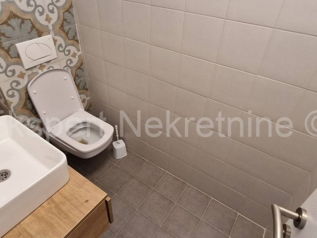 Čiovo, distretto di Gornji, confortevole bilocale 87 m2 (68+17 m2 di terrazzo), in un nuovo edificio. L'appartamento si trova al piano terra. Ha due camere da letto, un bagno, un wc, una cucina con sala da pranzo e soggiorno, e una grande terrazza (17 m2) con camino.L'appartamento si trova a 160 m dal mare e dalla spiaggia.L'appartamento ha pavimento riscaldamento in bagno, ceramiche di qualità, infissi in PVC, aria condizionata. , ecc... L'appartamento dispone anche di un ampio posto auto in garage.L'appartamento è parzialmente arredato con mobili nuovi che sono inclusi nel prezzo dell'appartamento.Può essere subito trasferito, la proprietà è in regola.