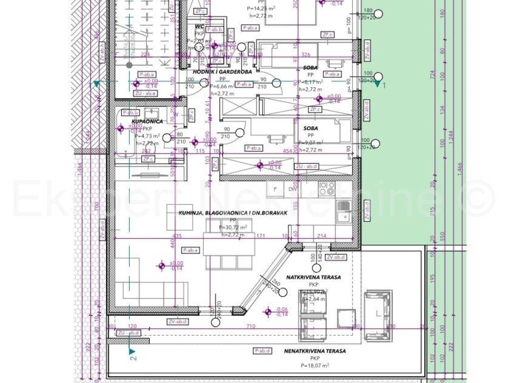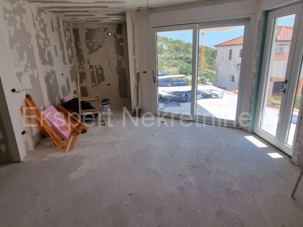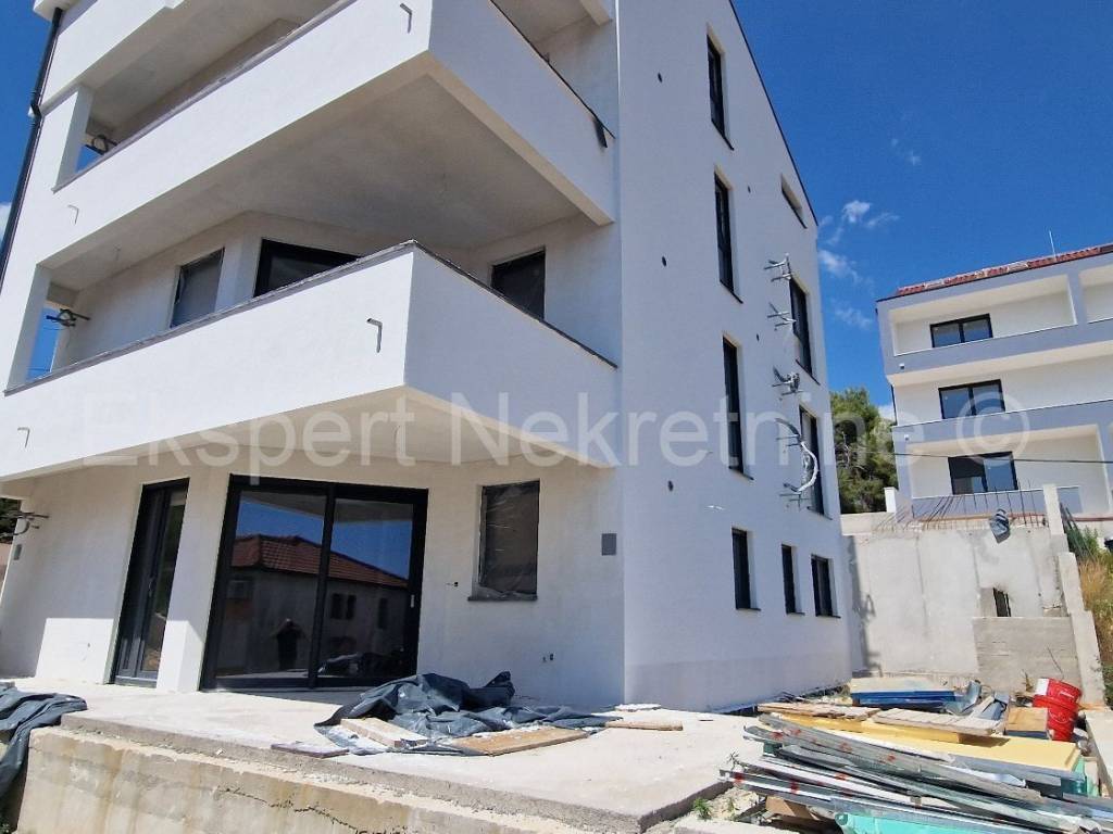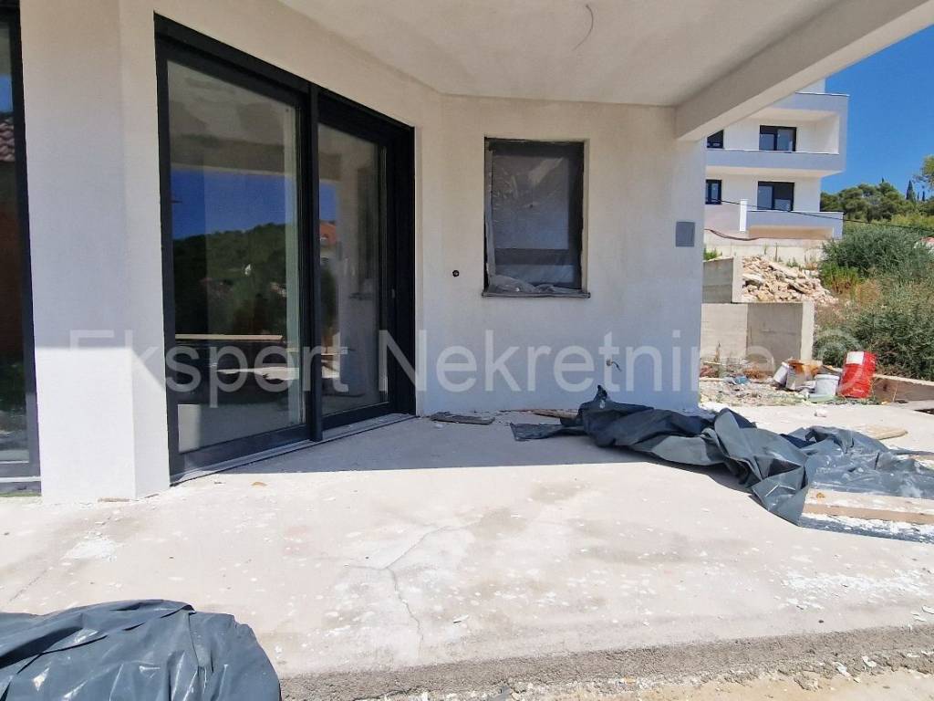 Trogir, Čiovo, Saldun, three-room apartment 110 m2 (76 m2 plus 34 m2 terrace) + garden (50 m2) in a new building in a smaller residential building with only 4 apartments. The apartment is located on the ground floor of the building, and consists of three bedrooms, bathroom, toilet, hallway, kitchen with dining room and living room, and a large terrace (34 m2) and garden (50 m2). The apartment is oriented east-south. The apartment has 1 parking space. The building is located in an excellent and quiet location, only 400 mfrom the sea, the beach and 1000 m from the old town center of Trogir. The start of the works is planned for 09/2023 and the completion is planned for the end of 2024.Quality equipment (inverter air conditioner, PVC carpentry, quality ceramics, underfloor heating, mosquito nets, electric blinds, security doors, etc.)Payment by stages of construction. Valid building permit. Reservations are accepted at this stage. For more information, contact the agency.