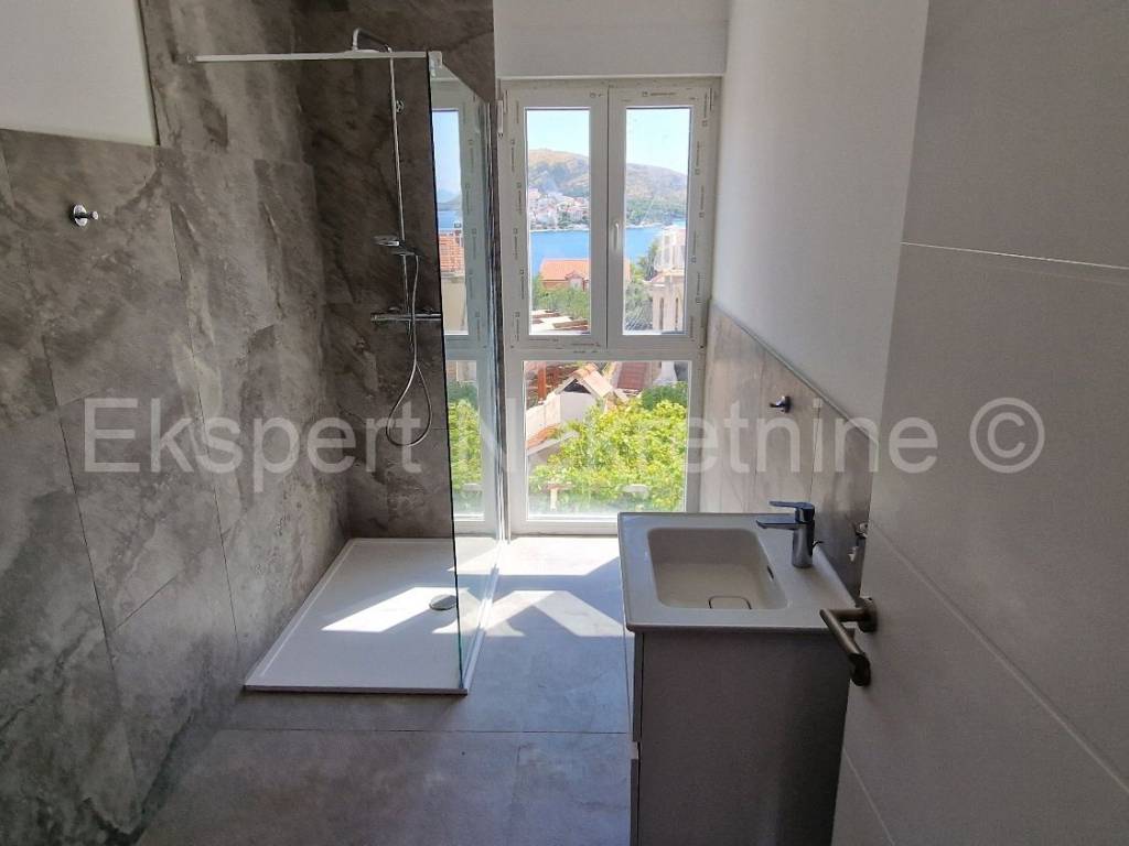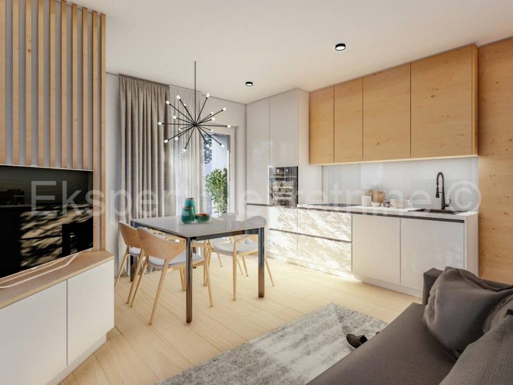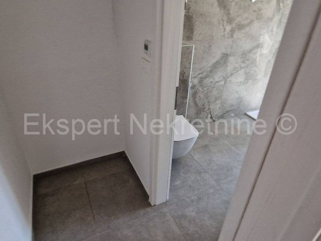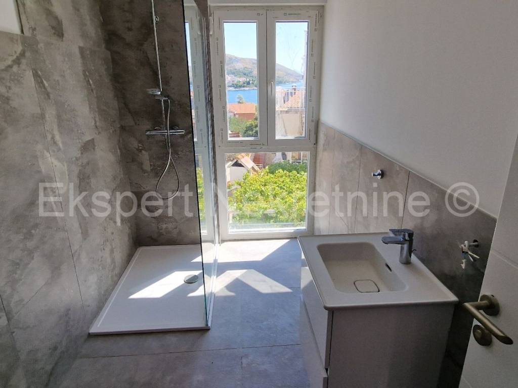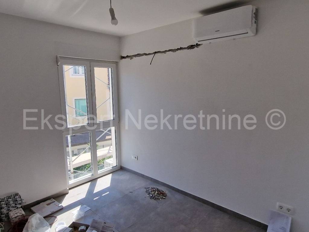 Čiovo,Okrug Gornji, small two-room apartment 54 m2 in a new building with a view of the sea in a building with 6 apartments. The apartment is located on the 1st floor of the building, and consists of one larger and one smaller bedroom, bathroom, hallway, kitchen and dining room. and a living room, a large terrace with a view of the sea. It is oriented south-east, and will be fully furnished and equipped with quality furniture and Bosch appliances. Quality construction (quality stone ceramics, air conditioning in every room, underfloor heating in the bathroom, PVC joinery ,radiant heating in the living room, etc...).The building is under construction, and the planned move-in is in the summer of 2024.Payment by stages of construction.The apartment is only 200 m from the sea and the beach, and there is also a shop nearby and restaurants and cafes. Along with the apartment, it is necessary to buy one outdoor parking space, the price of which is 10,000 euros and is paid separately from the price of the apartment. Ownership and construction documentation are in order.