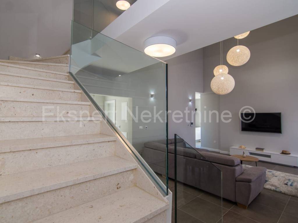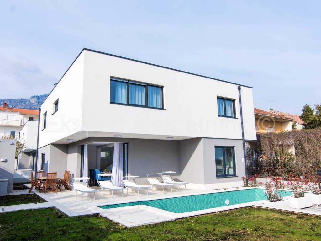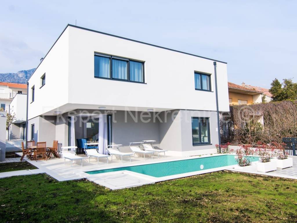 Kaštel Kambelovac, vendesi complesso di due ville di 250 m2 ciascuna, su un terreno di 865 m2, su due piani, ciascuno con la propria piscina, al piano terra si trova un ampio soggiorno con sala da pranzo e cucina, un bagno , uno studio, ed una scala interna che porta al secondo piano dove si trovano 4 camere da letto e tre bagni ed un guardaroba. Le ville sono completamente arredate con mobili nuovi e moderni e sono in affitto turistico.Posizione eccellente e tranquilla a soli 400 metri dal mare. Proprietà adeguata.Per ulteriori informazioni contattare l'agenzia.