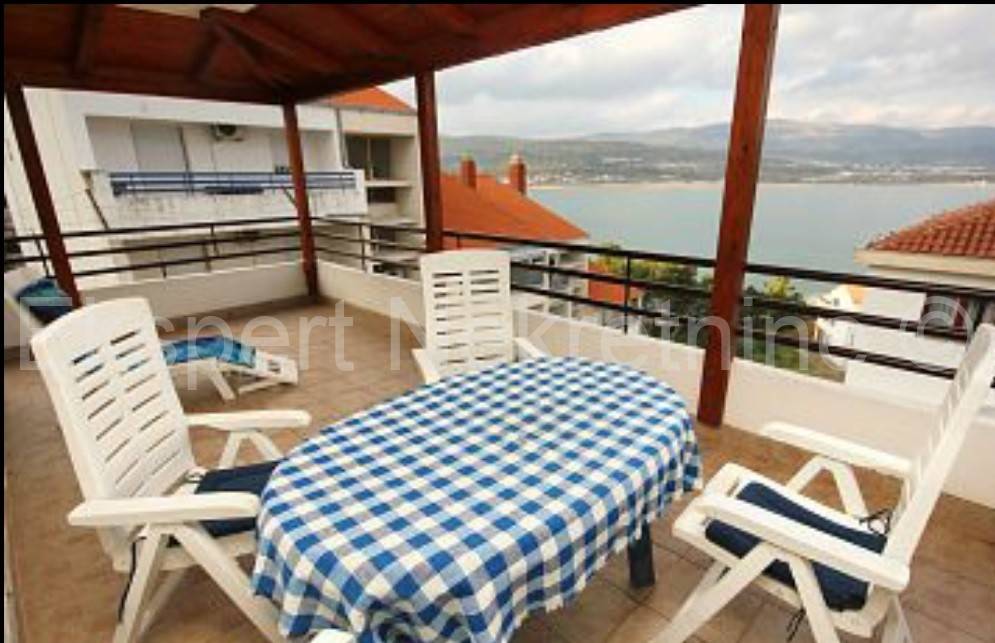 Trogir, Mastrinka, MIševac, confortevole appartamento bilocale di 97 m2, con ampia terrazza (22 m2), a soli 100 metri dal mare e dalla spiaggia, l'appartamento si trova al 1 piano di un piccolo edificio residenziale e dispone di due camere da letto , disimpegno, bagno, wc, cucina con sala da pranzo, un ampio soggiorno e una grande loggia di 22 mq con vista sul mare e sulla vicina spiaggia.