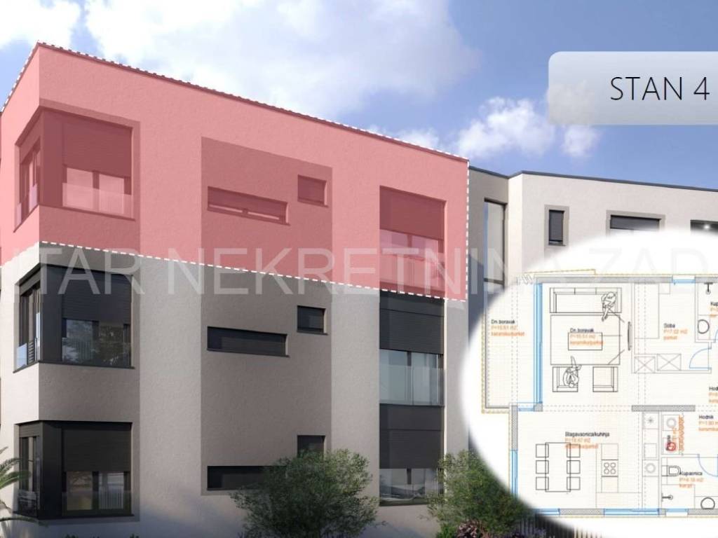 Apartments for sale in a small building in Belafuža, whose construction begins in September 2025, while the possibility of moving in is planned for December 2026.