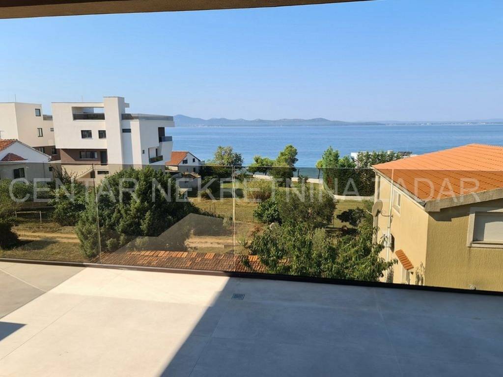 Luxury apartments for sale in a new building in Kožino, 100 m away from the sea. In the building there are four apartments: on the ground floor there is an apartment with a garden and a swimming pool, on the first floor there are two apartments, and on the second floor there is a penthouse with a roof terrace and a swimming pool. In the building there is an elevator.