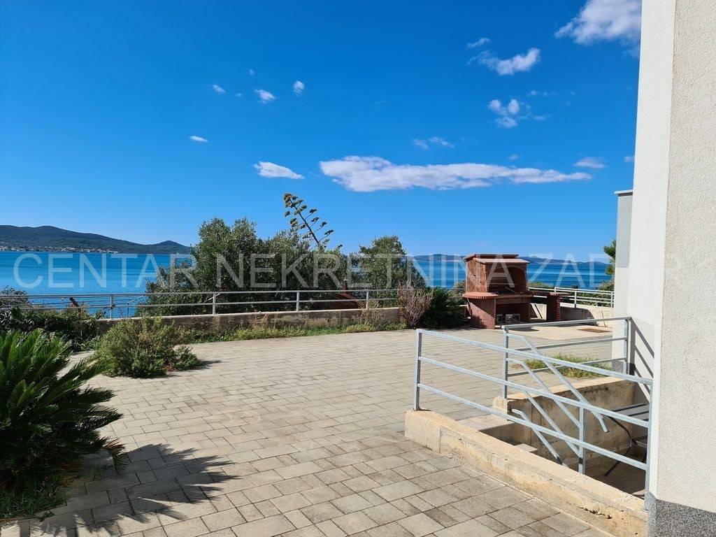 On the ground floor and first floor there is one apartment of 75 m each, consisting of a kitchen with a dining area and living room, two bedrooms, a hallway and a bathroom, and a balcony with a panoramic view overlooking the sea and the islands of the Pašman Channel. In the basement there is a large room that serves as a storage room and laundry room, and next to it there is an apartment consisting of a kitchen, living room, two bedrooms, a bathroom and a terrace. The apartments are furnished and equipped, with air conditioning in the living room and underfloor heating in the bathroom on the ground floor.