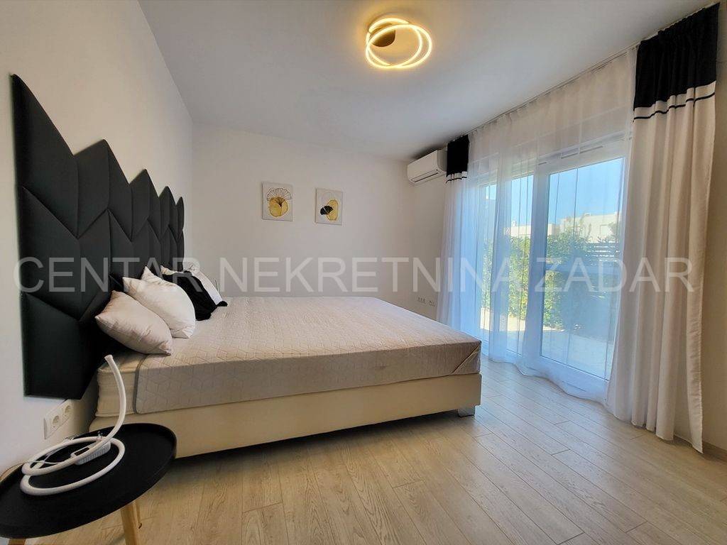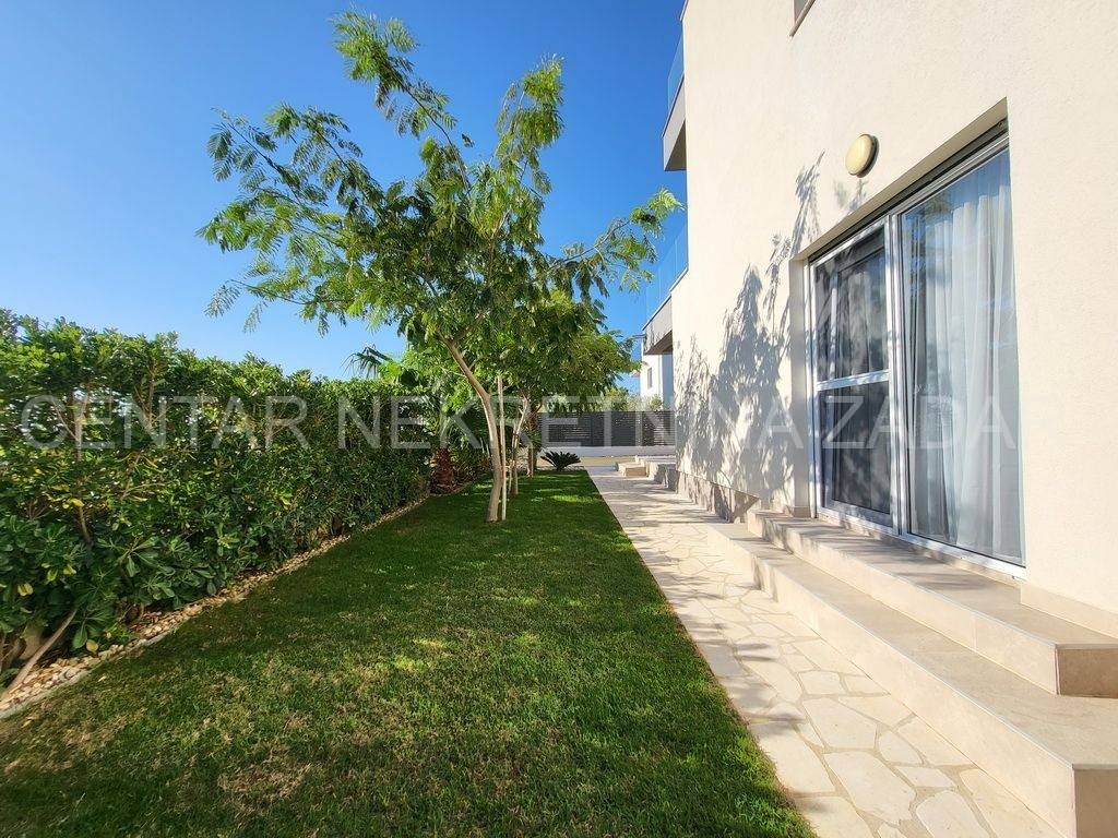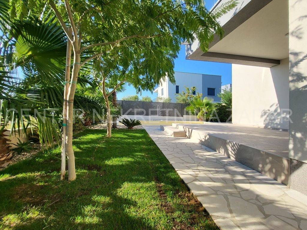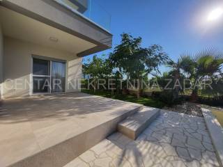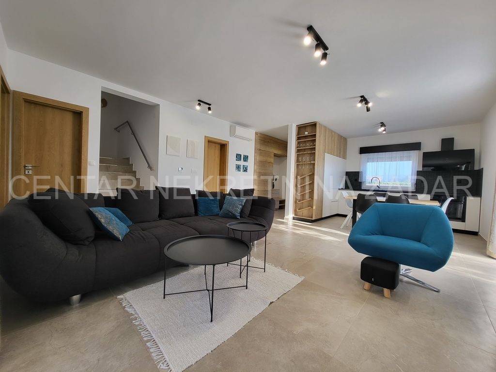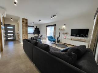 Luxury villa with pool in Privlaka for sale. It is located in a beautiful location, only 100 meters from the sea, and it offers a very nice view of the sea. The villa consists of a ground floor and a first floor and a roof terrace. On the ground floor there is a hallway, a bathroom, a kitchen with a dining room and a living room, a bedroom, a partially covered terrace, a storage room under the stairs and a storage room. The total area of the ground floor is 90.83 m2. On the first floor there are a total of three bedrooms, one of which has its own bathroom, a shared bathroom and a partially covered terrace. The total floor area is 77.77 m2. The internal stairs lead to the roof terrace, where the preparation for the jacuzzi and the partially installed summer kitchen have been made. The roof terrace with the associated staircase has an area of 85.85 m2. The villa is fully furnished and decorated, and the furniture is included in the price. The total area of the house is 254.45 m2. It was built on a plot of land of 441 m2.In the yard there is a swimming pool of 32 m2, a sunbathing area and an outdoor shower. The pool is also equipped for heating. The yard is landscaped and has an irrigation system. There are also 3 parking spaces in the yard.The villa is air-conditioned with a total of 5 air conditioners, one in each room and in the living room. There is underfloor heating in the bathrooms and in the living room, kitchen and dining room. The facade is covered with 10 cm thick Styrofoam. The windows are made of PVC material with blinds and mosquito nets.Privlaka is a small fishing and tourist town only a 15-minute drive from the town of Zadar, located on a spacious sandy peninsula between the royal town of Nin and the island of Vir. Clear sea and long, shallow sandy coves are created for complete relaxation. The place offers all the necessary facilities for a pleasant and quality life: shops, restaurants, post office, clinic and everything necessary for a peaceful and pleasant family vacation.
