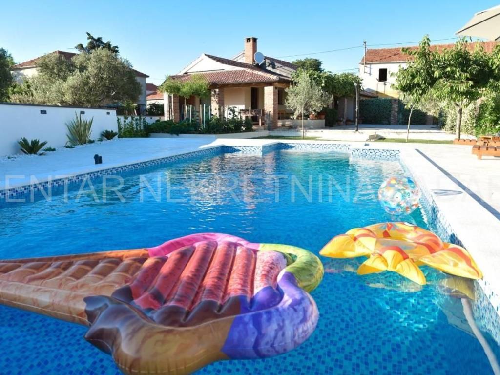 The yard is surrounded by a stone wall and beautifully landscaped. There is a parking lot at the approach to the house, while in the larger part of the yard there is a paved sunbathing area with an 8 x 4 m swimming pool and a lawn with fruit trees and a small vegetable garden.