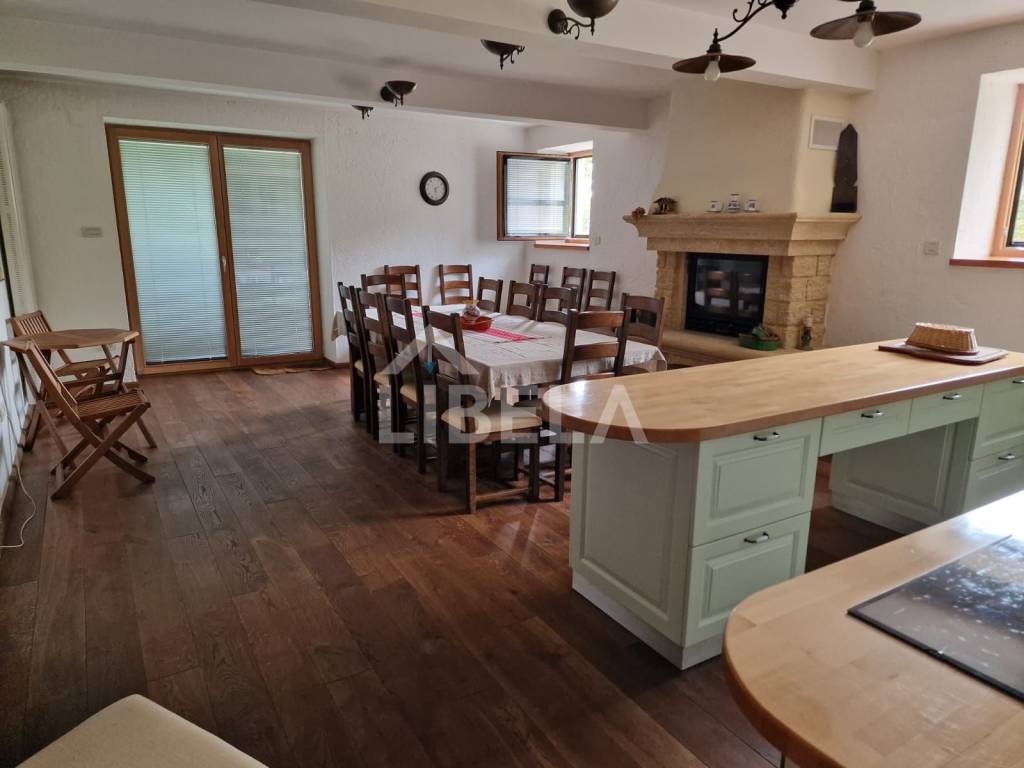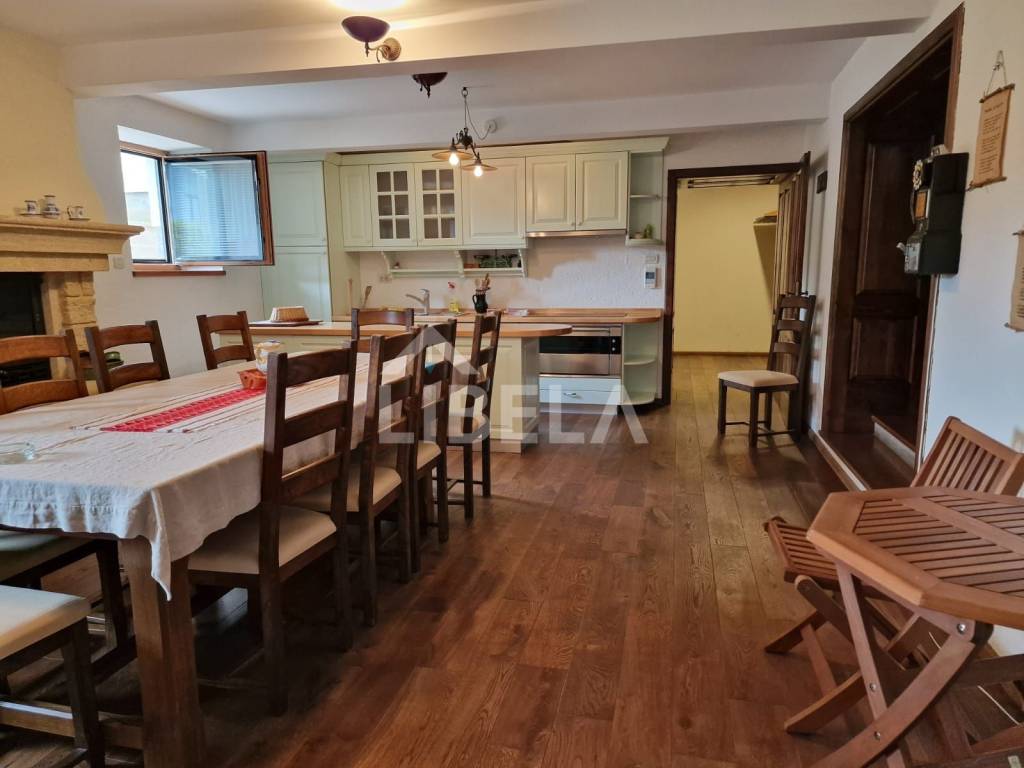 Kuća se sastoji od 4 etaže:Suteren:kotlovnica, ostava, toalet i open space prostor za druženje sa stolom za 16 osoba,kuhinjom i kaminom te izlazom na dvorište.