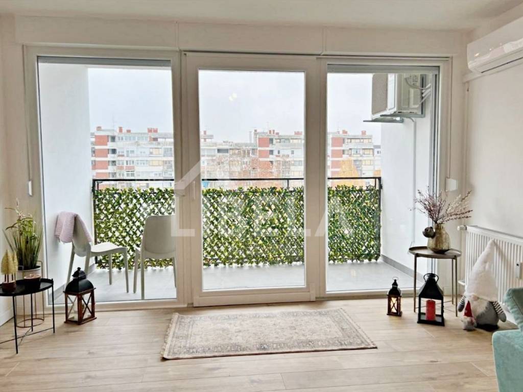Prodaje se potpuno renoviran, namješten i opremljen dvosoban stan od 65m2 + loggia od 3m2. Stan je na 5 katu zgrade s liftom izgrađene 1989. godine, a nalazi se u Aveniji Dubrava. Zgrada nije pretrpjela oštećenja u potresu.