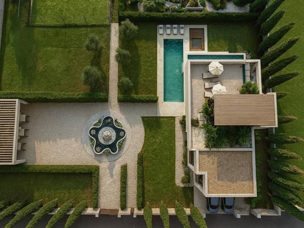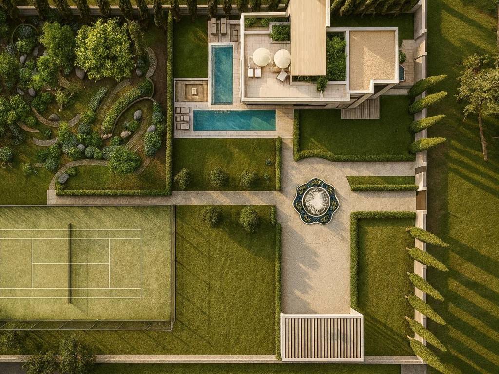 Il terreno offre una vista mozzafiato sul mare, mentre la villa stessa dispone di un parcheggio per più di 5 auto, inclusa una rotatoria per facilitare la circolazione dei veicoli. Al centro del parcheggio si trova una lussuosa fontana che enfatizza ulteriormente l'eleganza della proprietà.La villa vanta due piscine: la piscina a sfioro superiore con cascata al primo piano, rivestita con lastre di marmo di alta qualità, e la piscina inferiore al piano terra con una splendida cascata che crea un effetto visivo di grande impatto.I campi da golf e da tennis privati sono dotati di un sistema di irrigazione automatico, offrendo la possibilità di una vacanza attiva in qualsiasi momento.Terrazza sul tetto: sul tetto della villa si trova un'ampia terrazza con una parte coperta, ideale per rilassarsi e godersi l'indimenticabile vista che abbraccia le Alpi, il mare e la natura circostante. Questa terrazza è il luogo perfetto per incontri serali al tramonto.