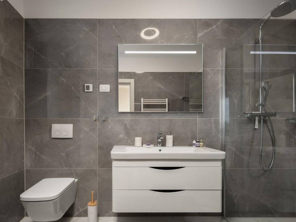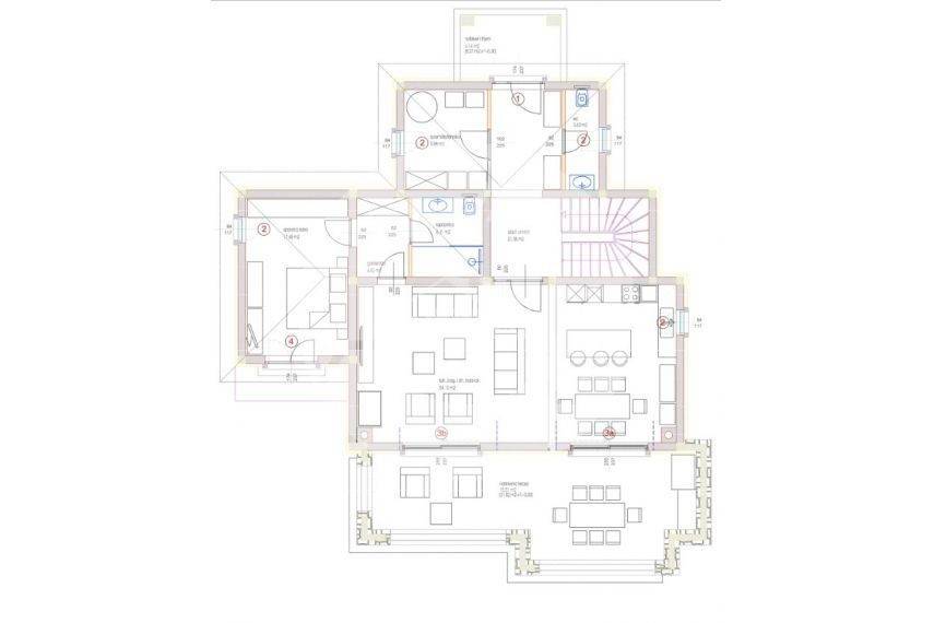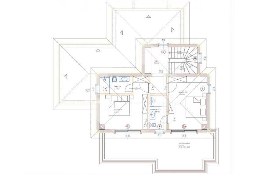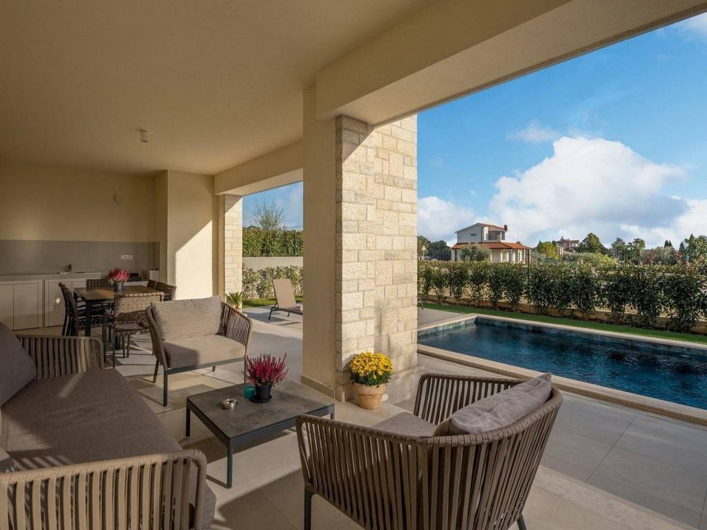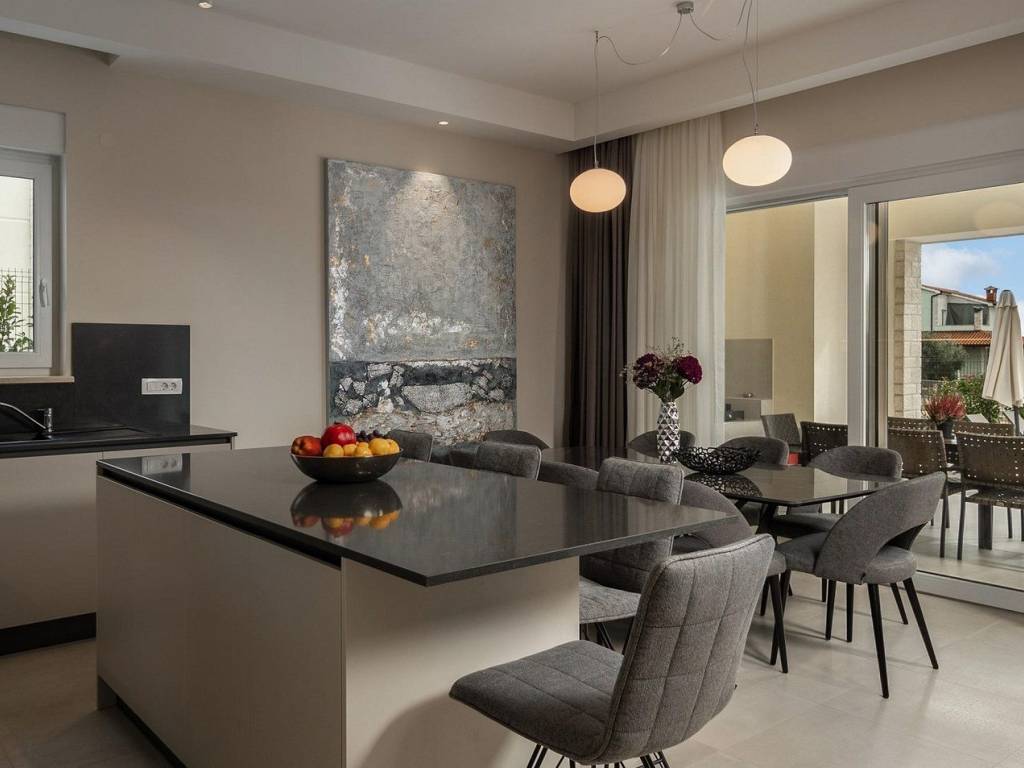 Vila od 208 m2 izgrađena je mediteranskim stilom na zemljištu od 725 m2. U prizemlju se nalazi i prostrani dnevni boravak, blagovaona te moderna i potpuno opremljena kuhinja sa šankom. Iz blagovane i dnevnog boravka se direktno izlazi na vanjsku terasu , gdje se nalazi ljetna kuhinja sa roštilj na ugljen ili drvo gdje možete pripremiti ukusna jela za cijelu obitelj. Na katu su smještene dvije spavaće sobe sa en suite kupaonicu s tuš kabinom. Dvije spavaće sobe se nalaze na gornjem katu vile i imaju izlaz na vlastitu terasu s koje imate pogled na more, dok se treća soba nalazi u prizemlju.U uređenom dvorištu vile nalazi se grijani bazen sa slanom vodom veličine 28 m2.