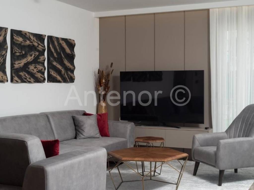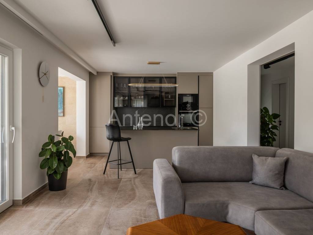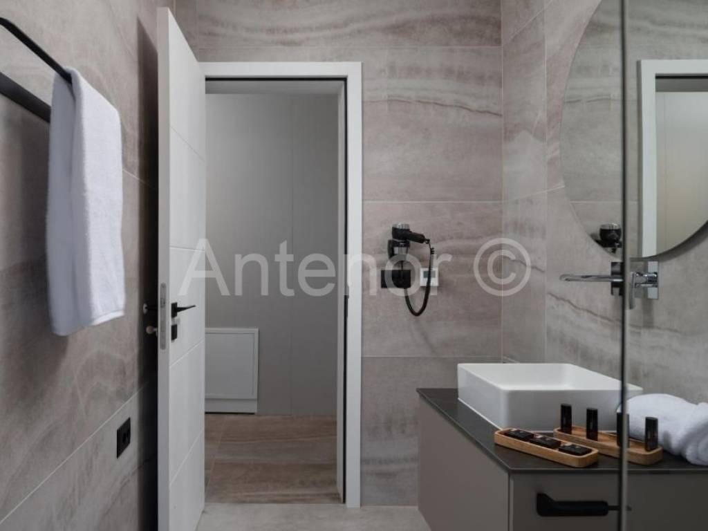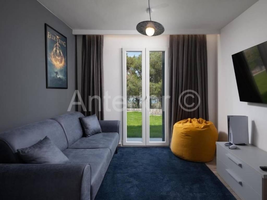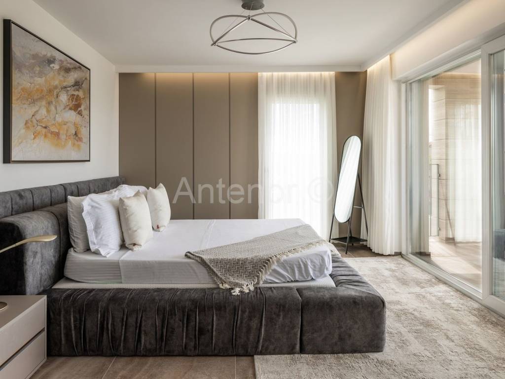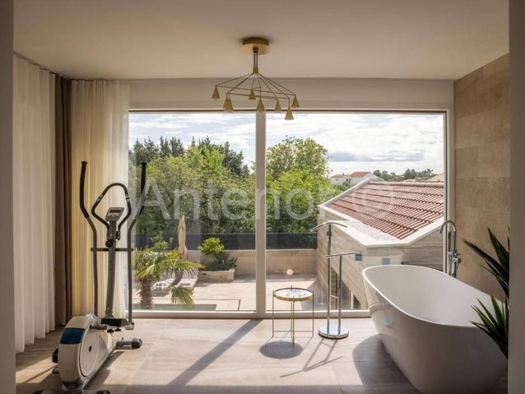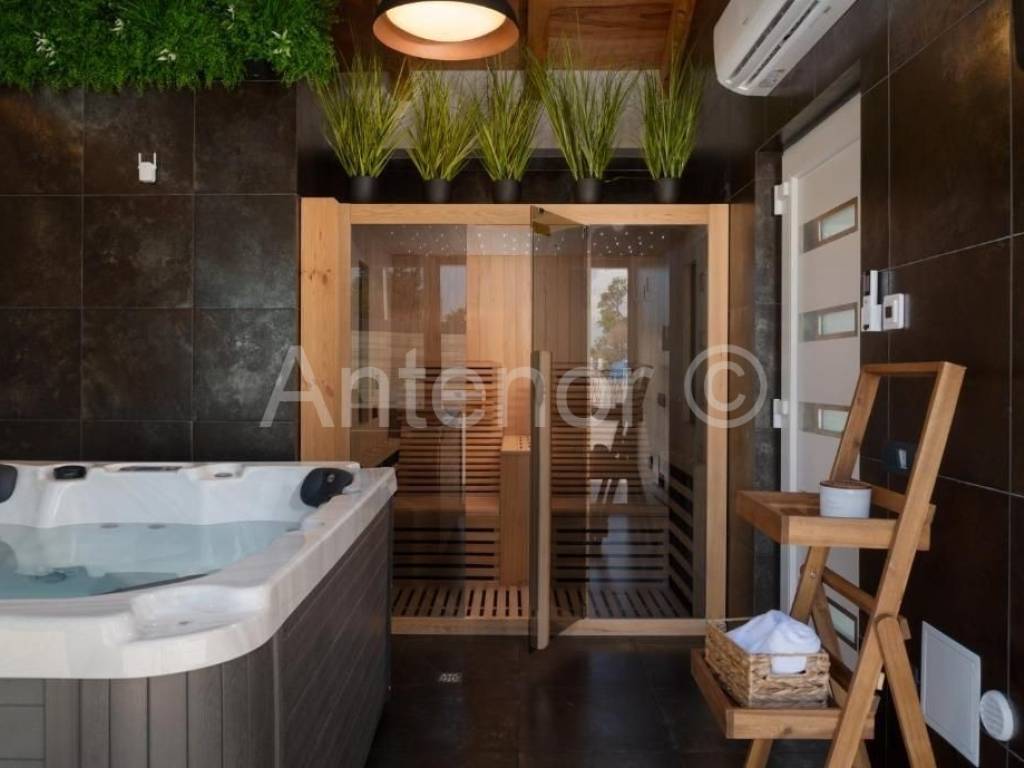 Vila ima 265 m2stambenog prostora, asastoji se od prizemlja i kata.U prizemlju se nalazi dnevni boravak, kuhinja i blagovaonica otvorenog tipa sa staklenim stijenama, spavaća master soba koja ima vlastitu kupaonicu, toalet i garderobu. Također, u prizemlju se nalazi spa soba sa saunom, jacuzzijem, teretanom...