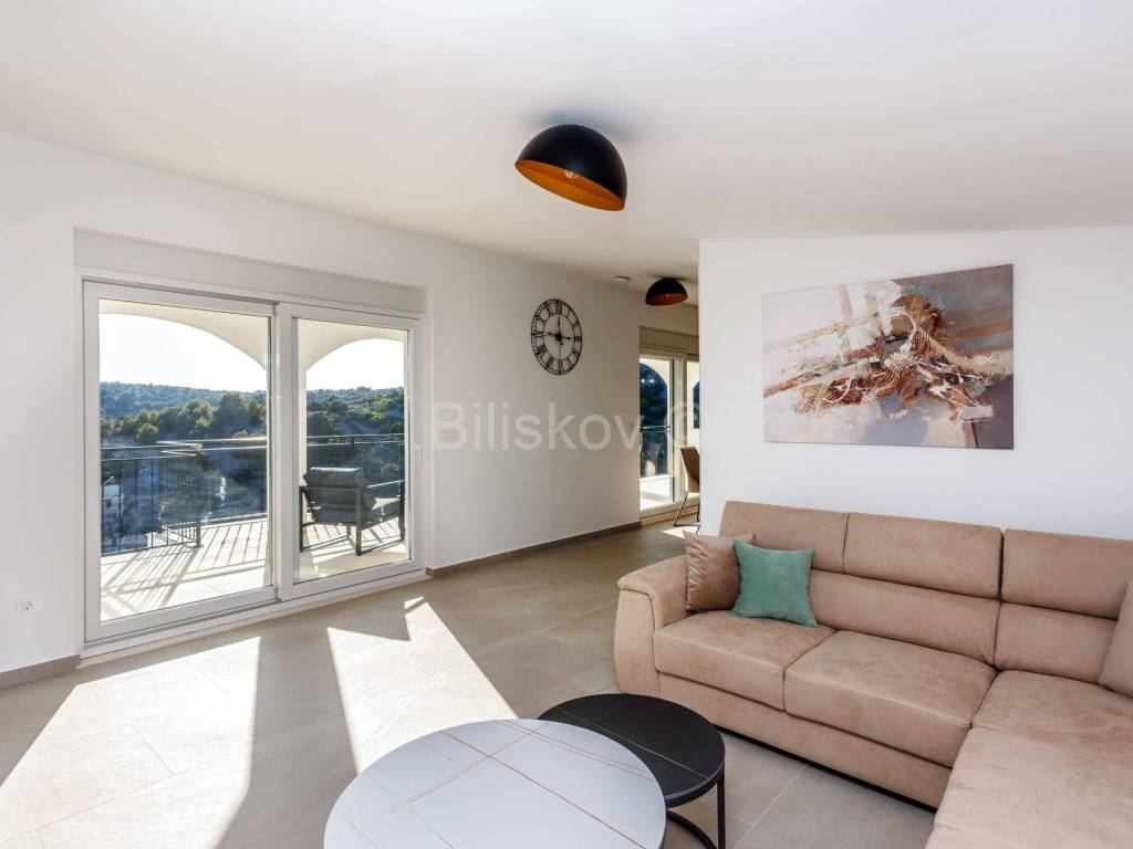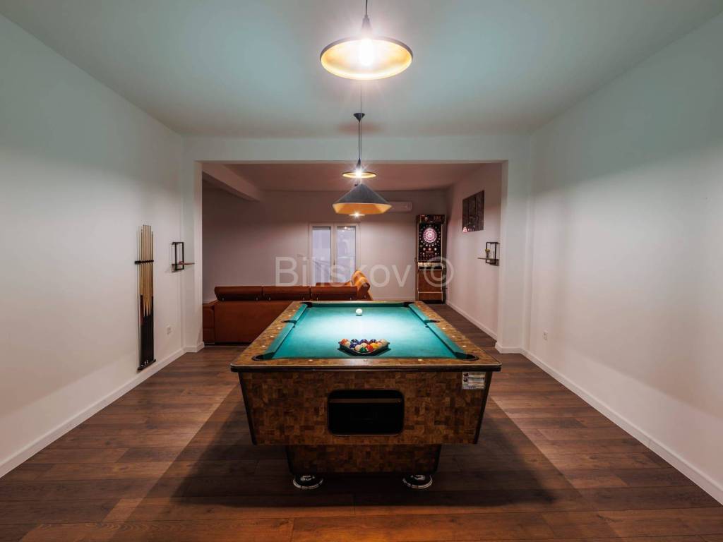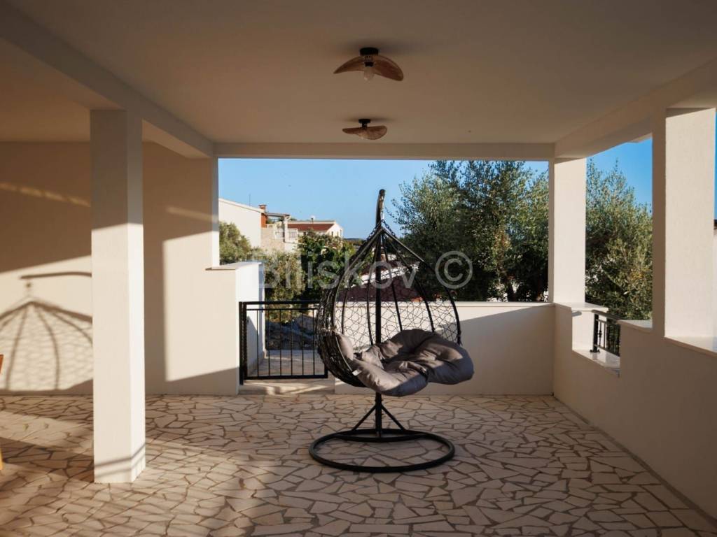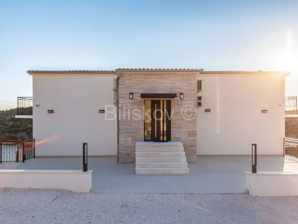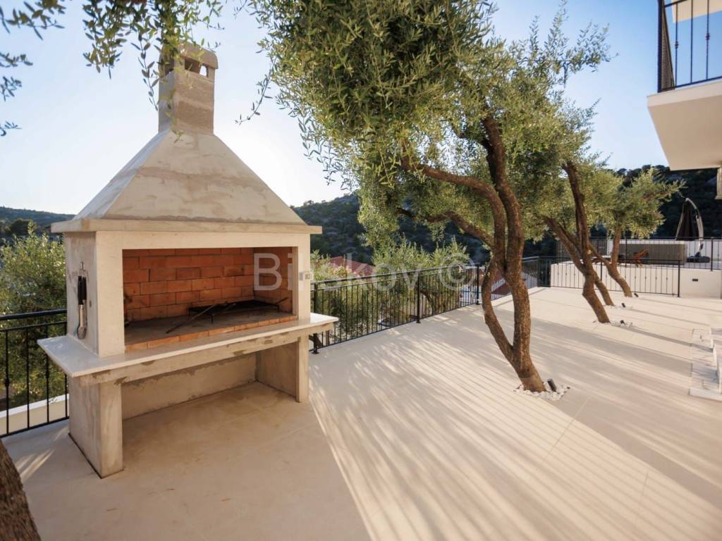 U prizemlju se nalazi dvosobni apartman i podrum, dok se na prvom katu nalaze tri sobe, vešeraj i igraonica. Drugi kat nudi prostor predviđen za saunu, dvije sobe i teretanu, a na trećem katu smješteni su dnevni boravak i kuhinja s izlazom na prostranu terasu. Sve prostorije u kući imaju izlaz na balkon s prekrasnim pogledom na more.