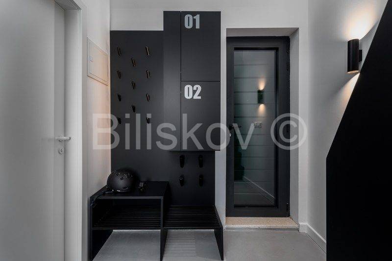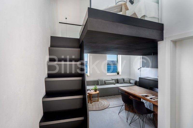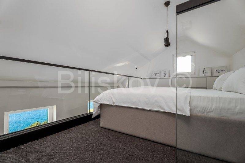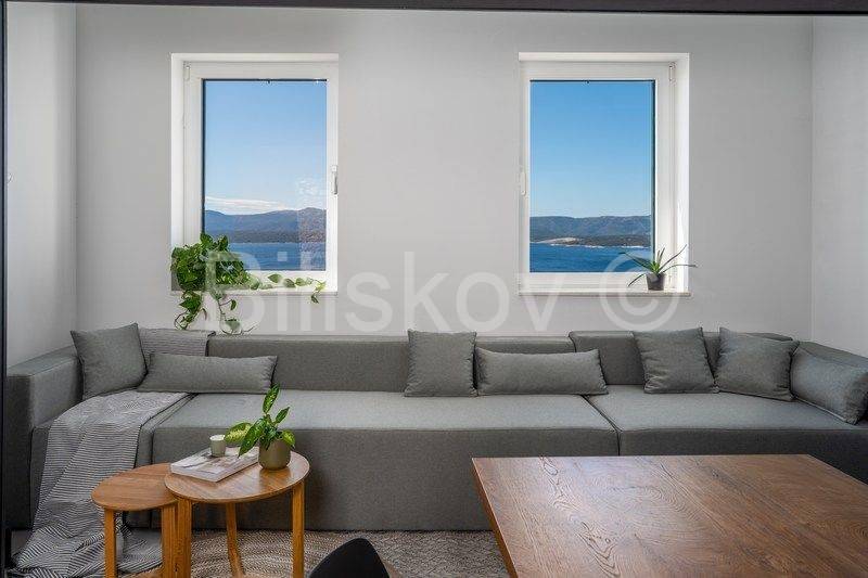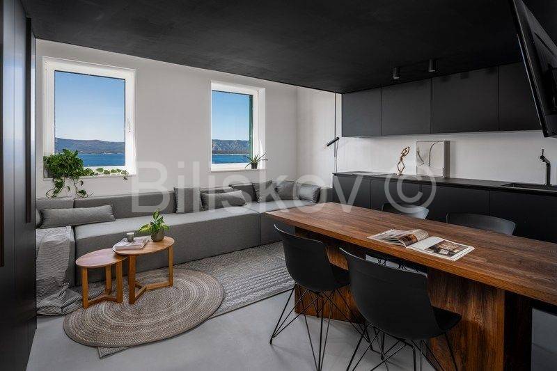 1/9 of the shared garden including: fully equipped outdoor kitchen, hot tub, Finnish sauna with view, pergola, dining area, sitting area and yoga.The apartment, along with the entire house, was completely renovated in 2023 and is in a successful and established tourist rental. All apartment units are modernly decorated, integrated into the indigenous architecture and can be used throughout the year. The interior features smart design and top-notch finishing.From each floor there is a beautiful panoramic view of the island of Hvar.The configuration of the terrain ensures that such a view will remain unobstructed in the future.250 meters from the house there is a local beach, one of the most beautiful on the Adriatic.Public parking about 30 meters from the house.Energy certificate C.Ownership in order.