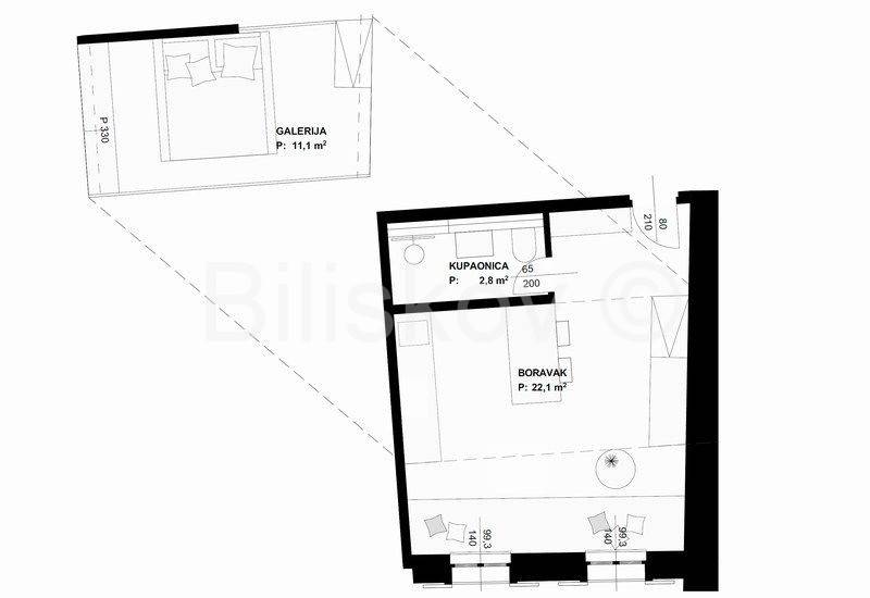 On the south side of the idyllic island of Brač, there is a harmoniously renovated stone house with 9 apartments on three floors.On the second floor there is an apartment of 36.0 m2It consists of a kitchen with a living and sleeping area and a bathroomThe apartment of 36.0 m2 is characterized by: