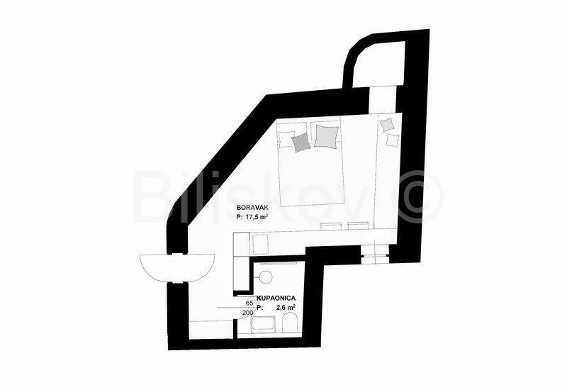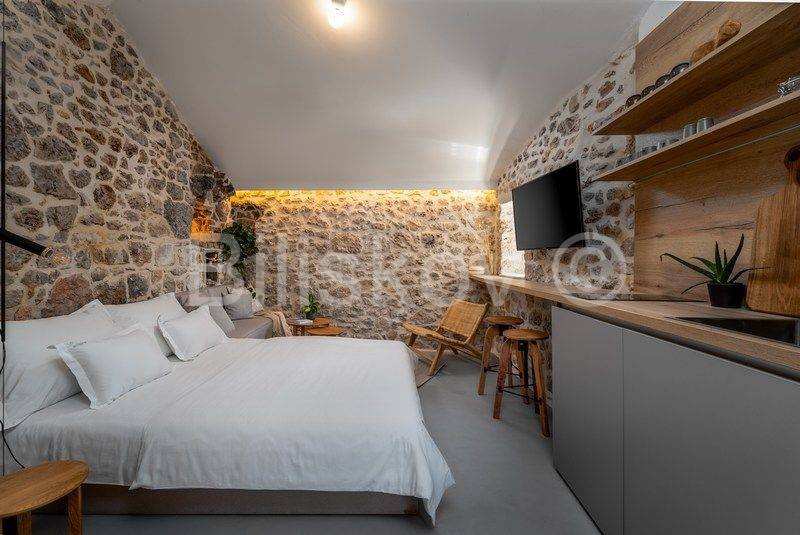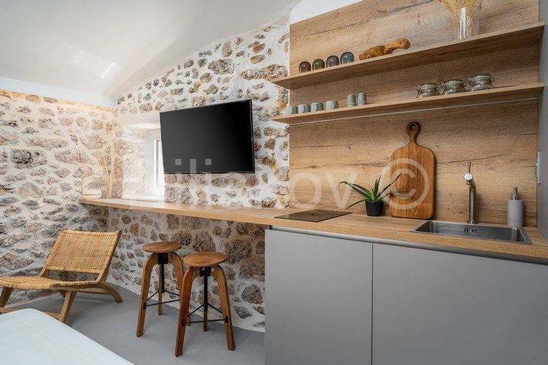 On the south side of the idyllic island of Brač, there is a harmoniously renovated stone house with 9 apartments on three floors.On the second floor there is an apartment of 20.1 m2It consists of a kitchen with a living and sleeping area and a bathroomThe apartment of 20.1 m2 is characterized by: