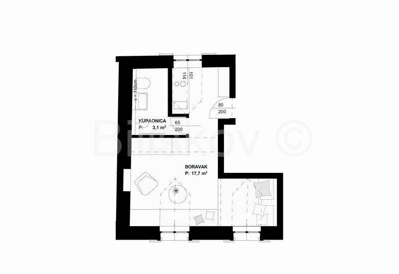 On the south side of the idyllic island of Brač, there is a harmoniously renovated stone house with 9 apartments on three floors.On the second floor there is an apartment of 20.8 m2It consists of a kitchen with a living and sleeping area and a bathroomThe apartment of 20.8 m2 is characterized by: