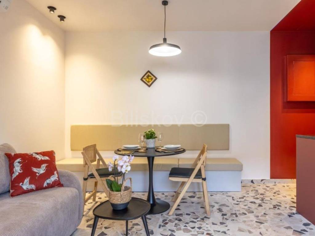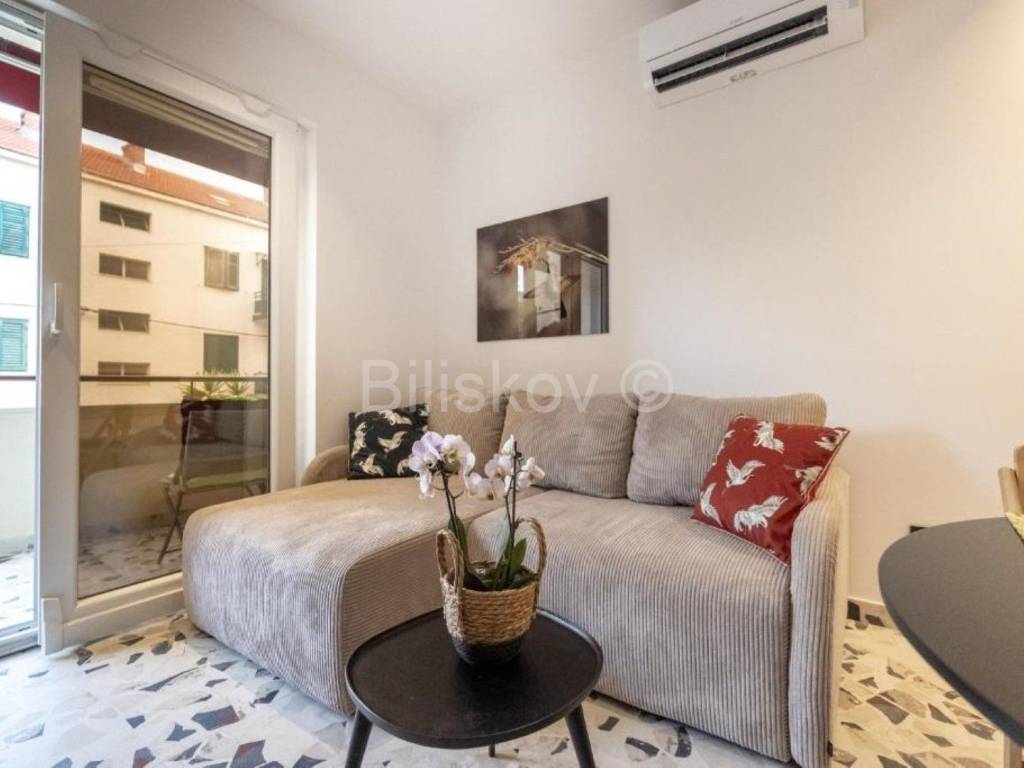 Split, Bačvice, in a residential building without an elevator, apartment with a total usable area of 48m2, south orientation.It consists of a kitchen with a dining room and a living room, a bedroom, a bathroom and a terrace.It is air-conditioned, renovated, completely newly equipped.It is available from October to June.In the immediate vicinity there is all the necessary facilities, it is a few minutes' walk from Bačvice beach, and 5 minutes from the city center.The deposit amounts to one monthly rent.The agency commission amounts to one monthly rent plus the corresponding VAT.www.biliskov.com ID:14523-1