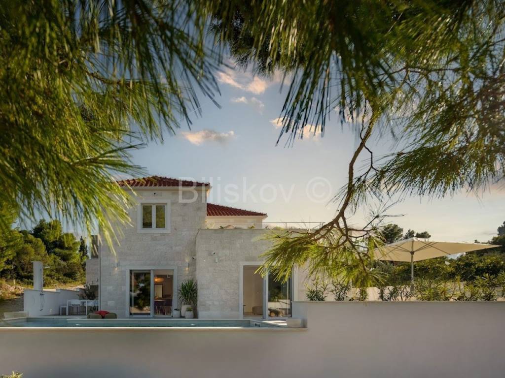 Brač, Splitska, abeautiful villa of 150 m2 of living space with a swimming pool on a plot of 366 m2.