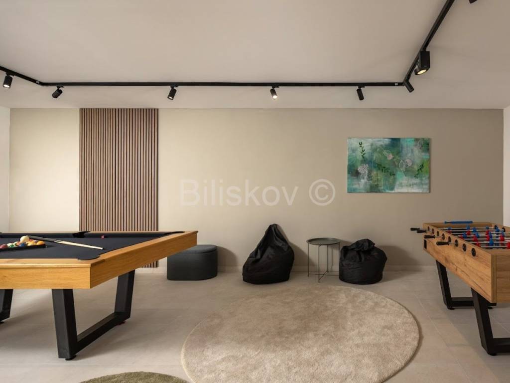 The facilities on the large terrace on the ground floor include a swimming pool, barbecue, outdoor dining table and relaxation area. Parking for two cars.