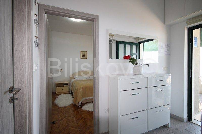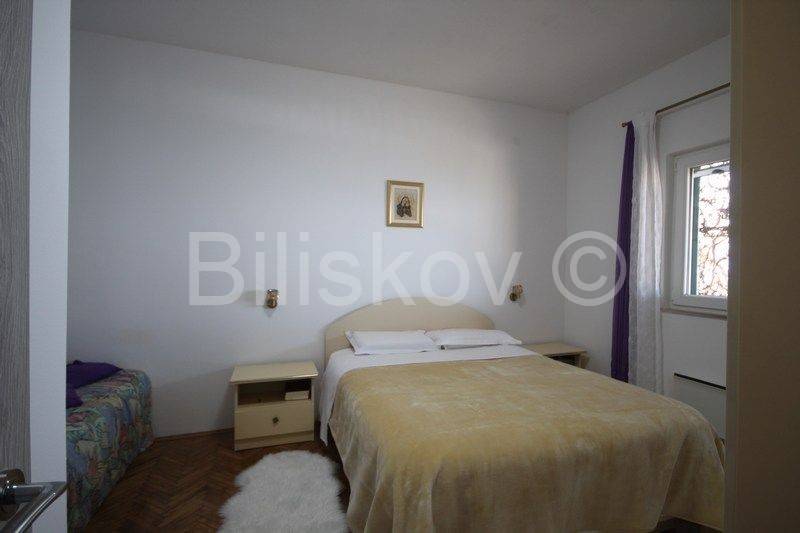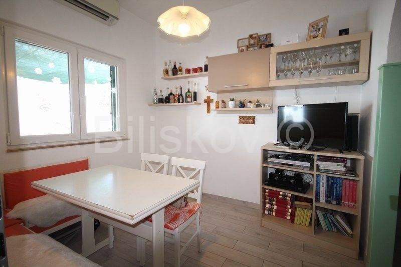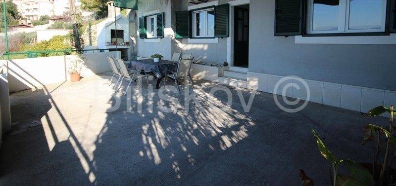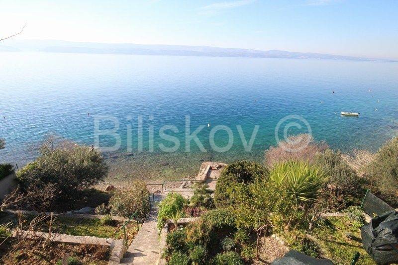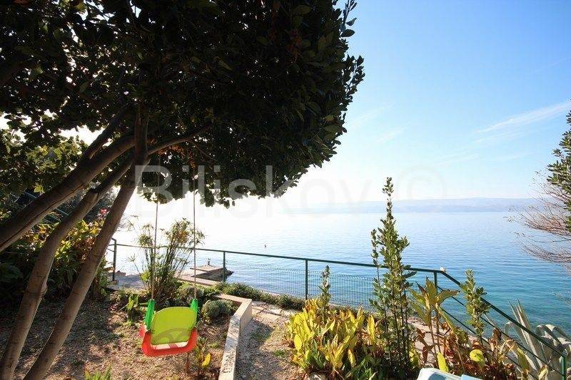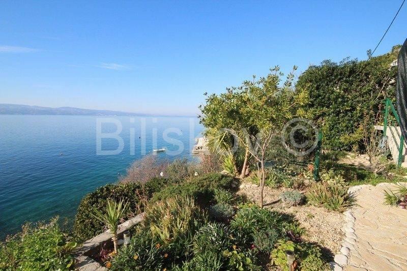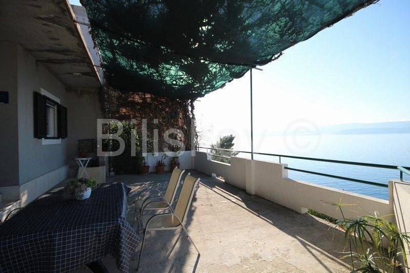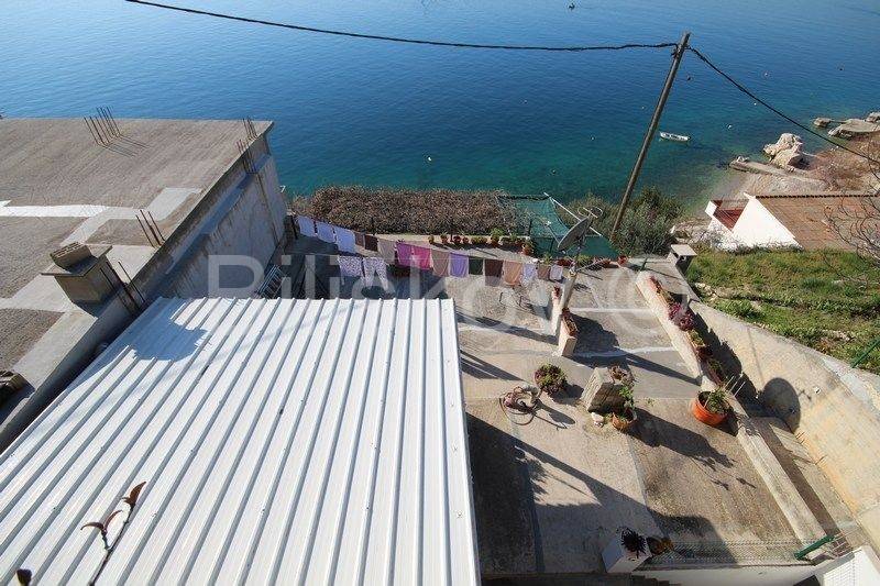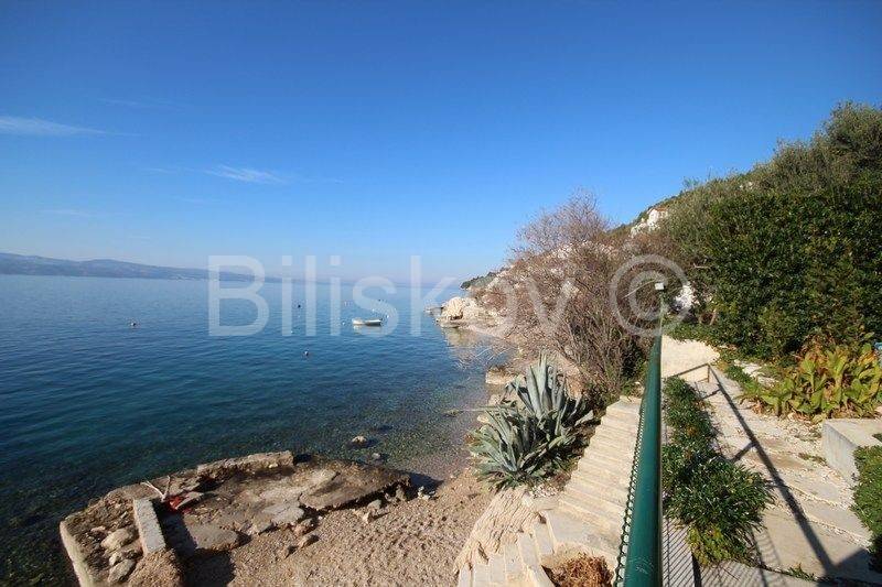 Omiš, surroundings, Čeline Zavode, semi-detached single-storey house of approx. 95 m2, on a plot of land of 600 m2, 1st row from the sea.It consists of two bedrooms, kitchen, dining room and 2 bathrooms with toilet.Big terrace.Plot of 298m2 intended for parking.2 connections and an old mul.Built in 1988For renovation and extension! www.biliskov.com ID: 14144-1