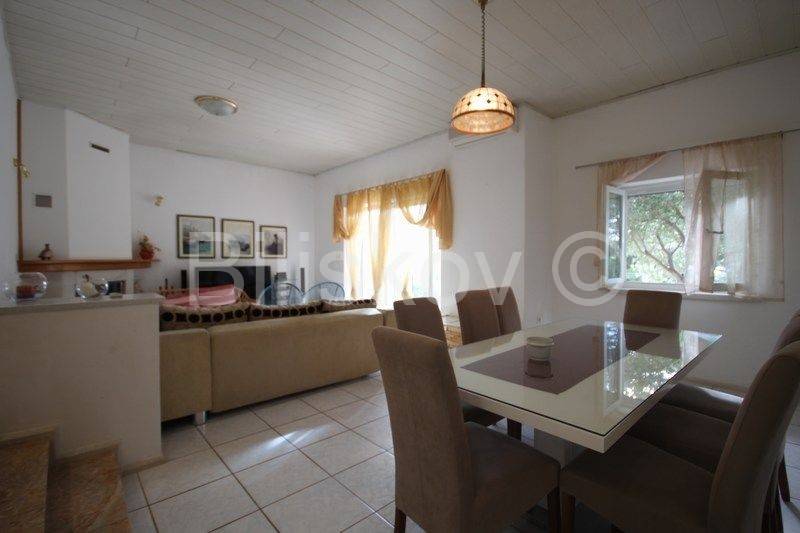 The living space has an open concept, and consists of a spacious kitchen with a bar, a dining room and a living room with access to a large covered terrace with a wonderful view of the sea and the islands.