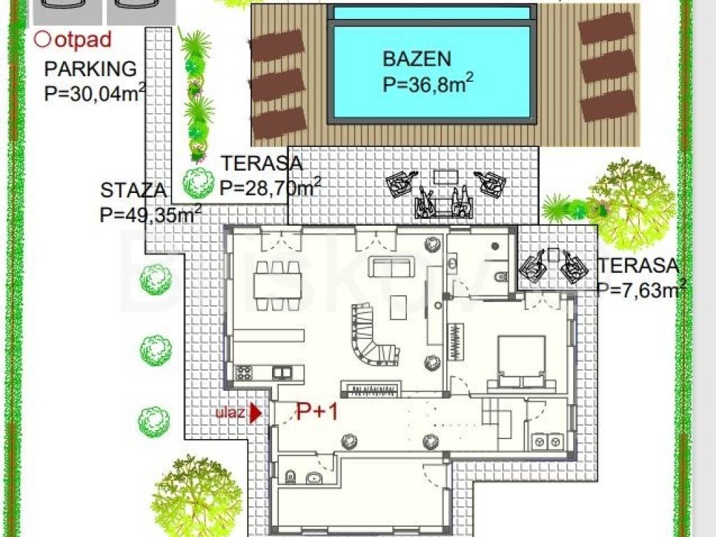 The villa impresses with its individual design and quality construction. Large windows allow a lot of natural light in the space, while at the same time providing a beautiful view of nature.
